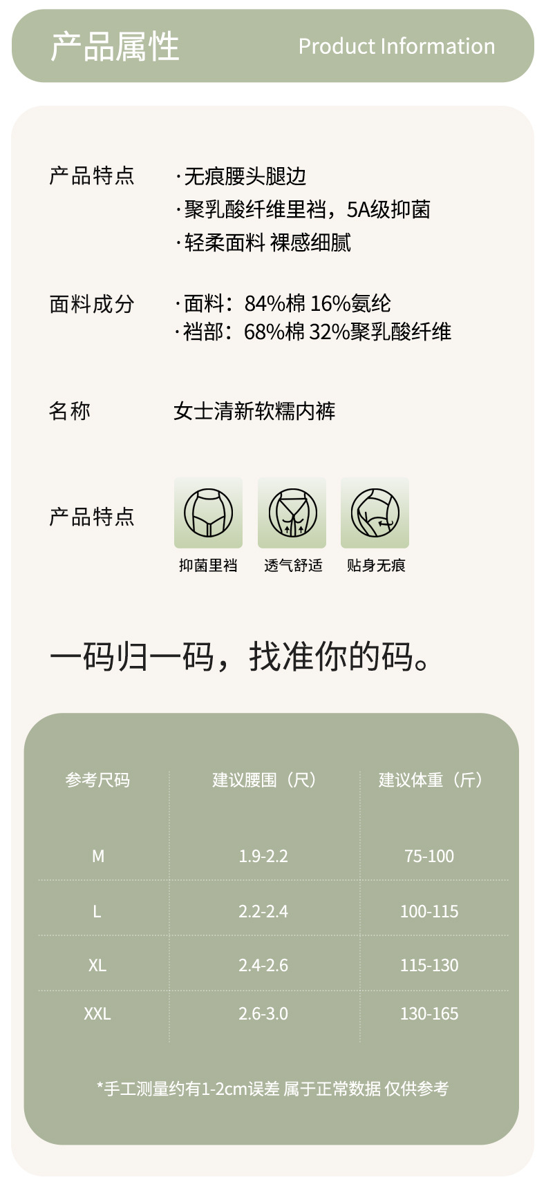 100S Xinjiang 롱 스테이플 코튼 여성 속옷 소녀 폴리락트산 5A 항균 가랑이 솔리드 컬러 코튼 미드 웨이스트 소녀 팬티