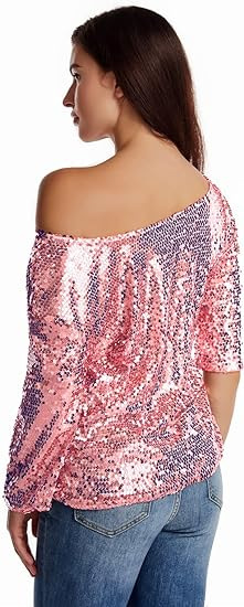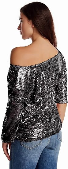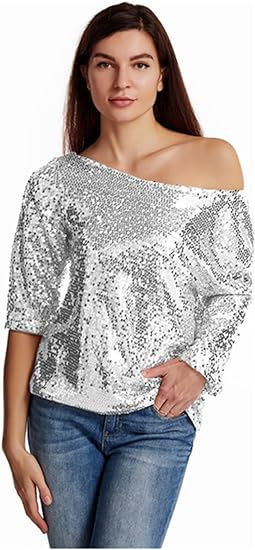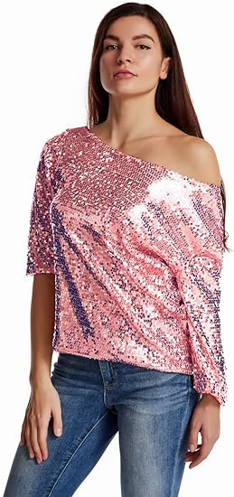 2024 유럽과 미국의 새로운 AliExpress 유럽과 미국의 새로운 느슨한 스팽글 어깨 짧은 소매 캐주얼 스팽글 깊은 V 셔츠스토어 가기