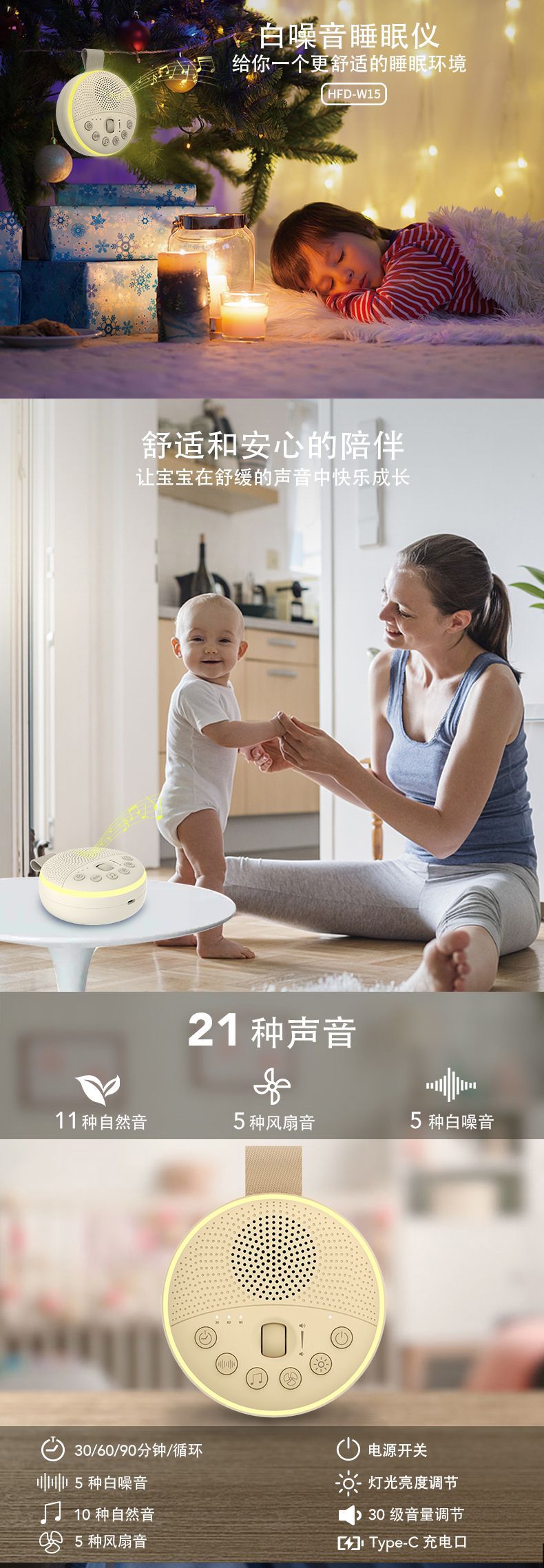 국경 간 개인 모델 스마트 수면 장치 휴대용 백색 소음 수면 장치 따뜻한 빛 야간 조명 아기 진정 백색 소음 기계