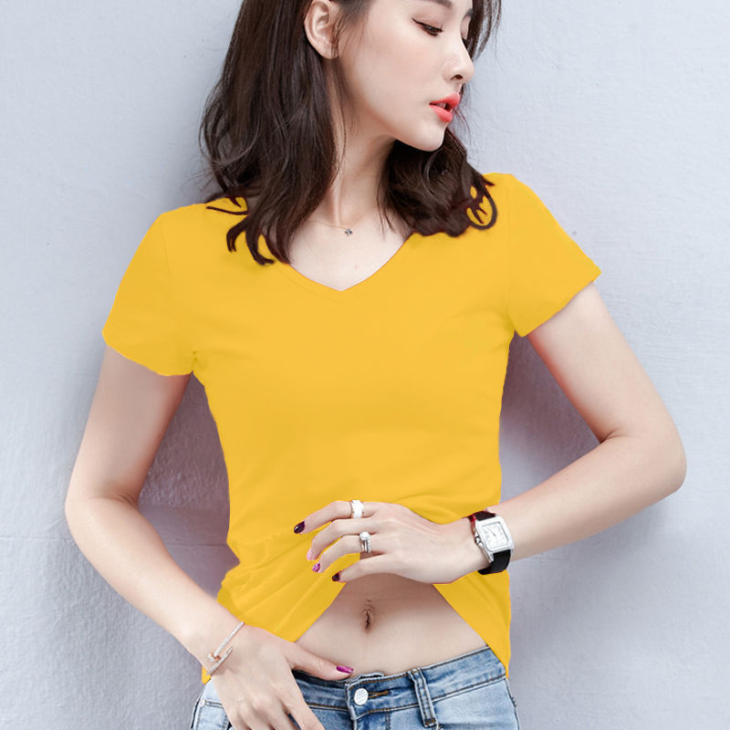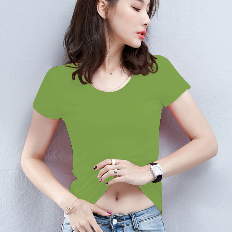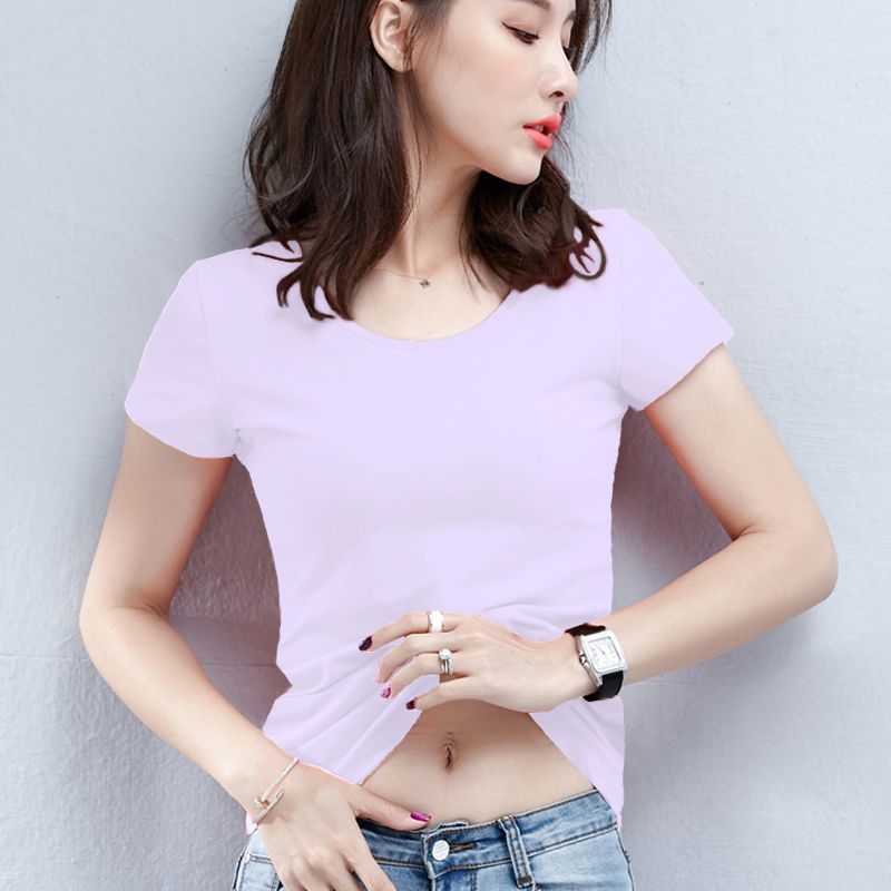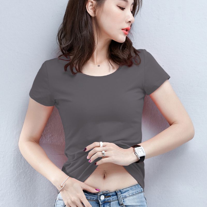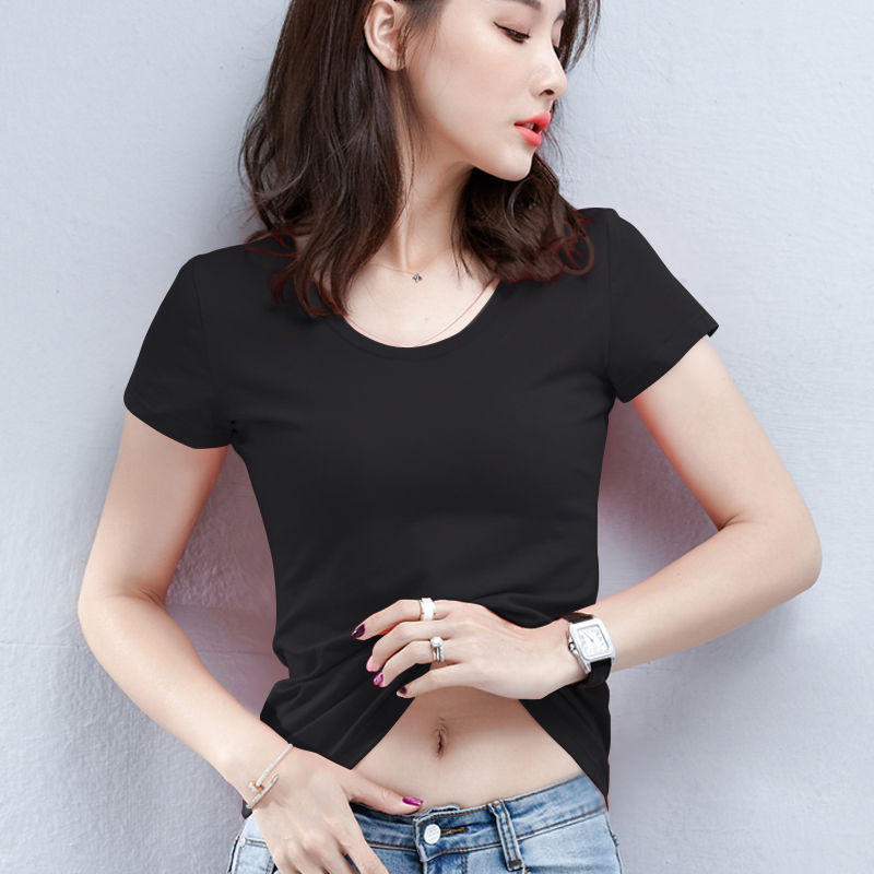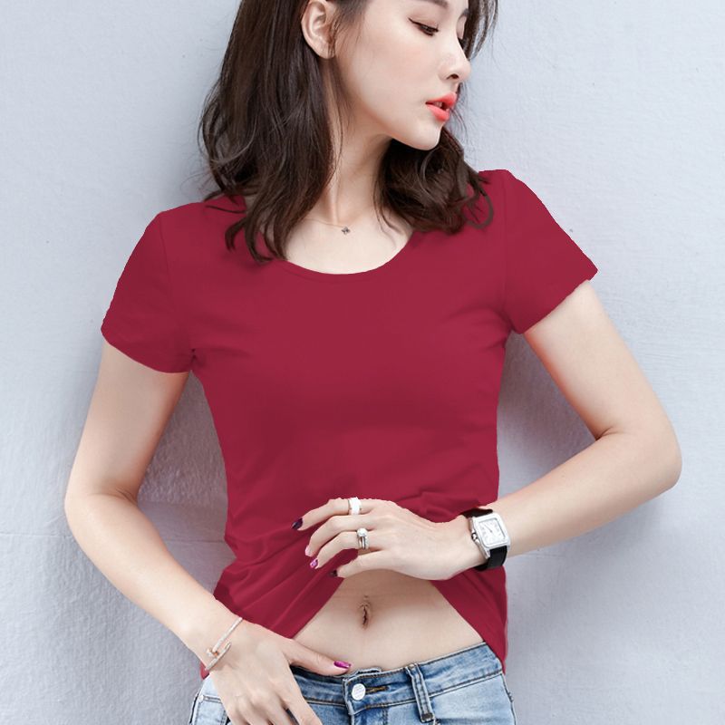 레드 숄더 짧은 소매 티셔츠 여성용 여름 슬림 핏 여성용 크루 넥 하프 슬리브 베이스 셔츠 연령 감소 타이트탑 도매