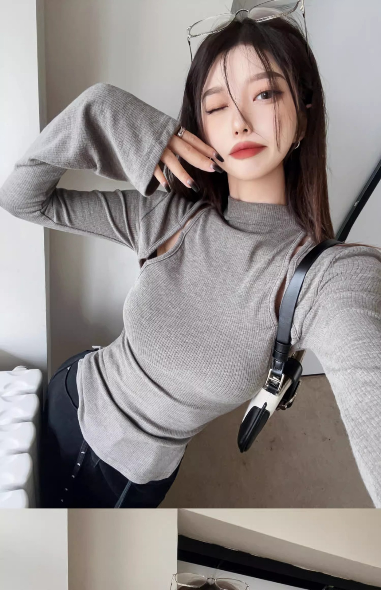 여성을위한 반 터틀넥 회색 바닥 셔츠 봄과 가을 내복 슬림 핏 슬리밍 순수한 욕망 스타일 핫 소녀 타이트 긴팔 티셔츠 탑