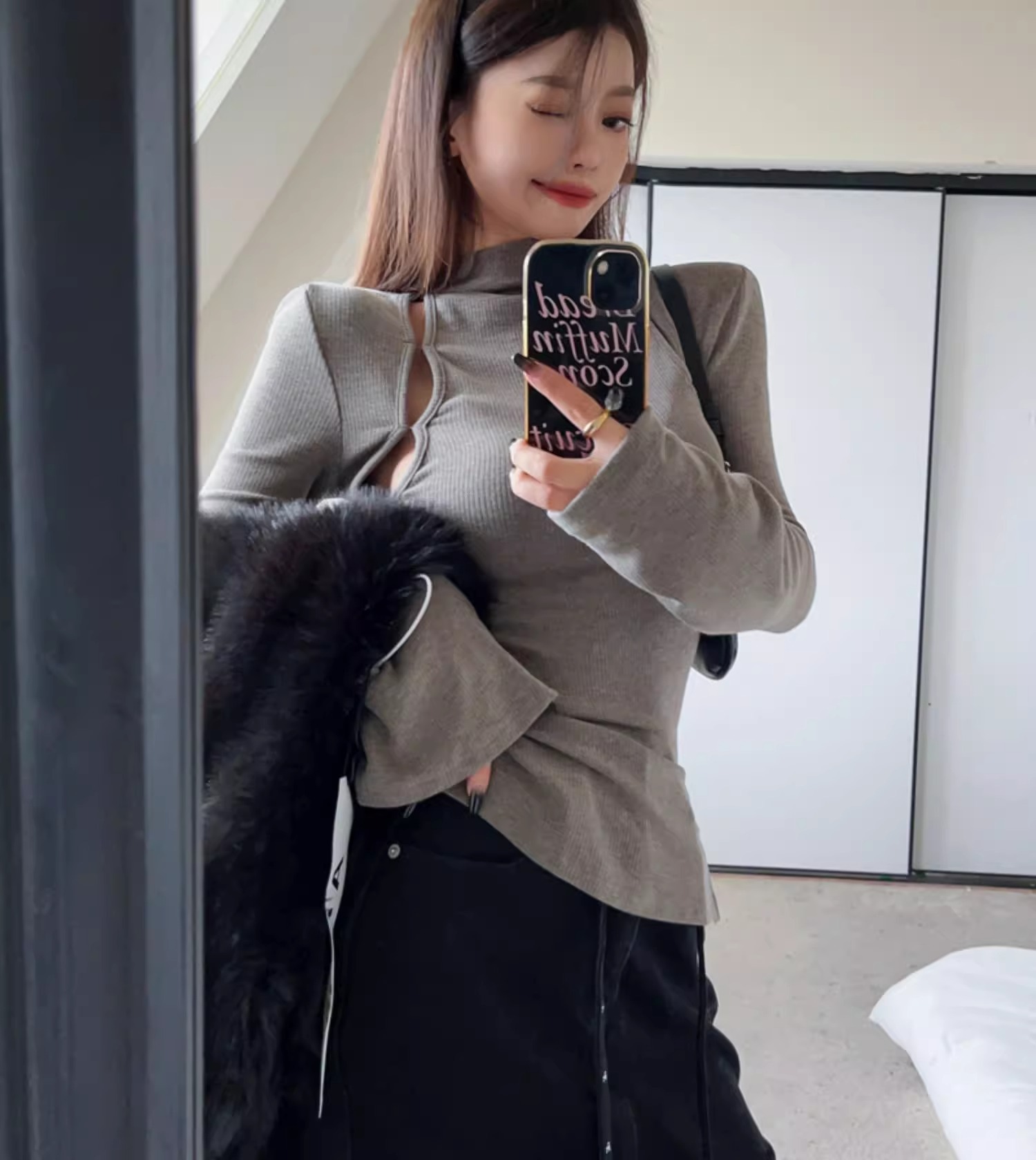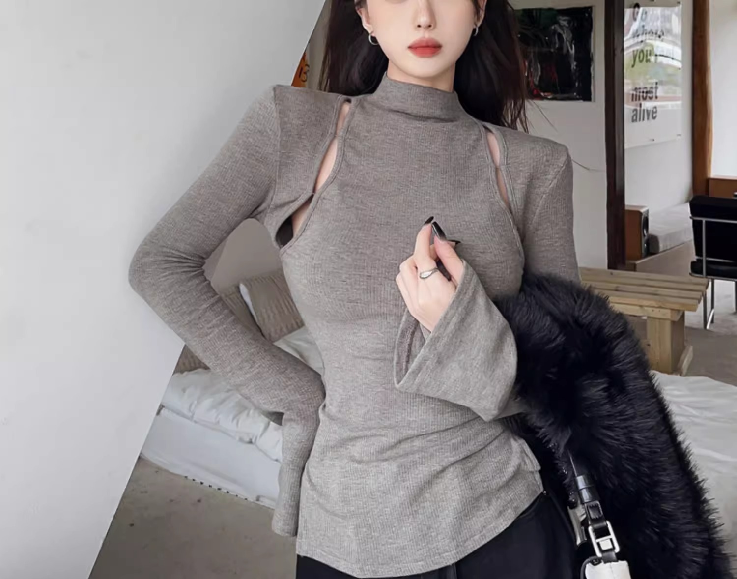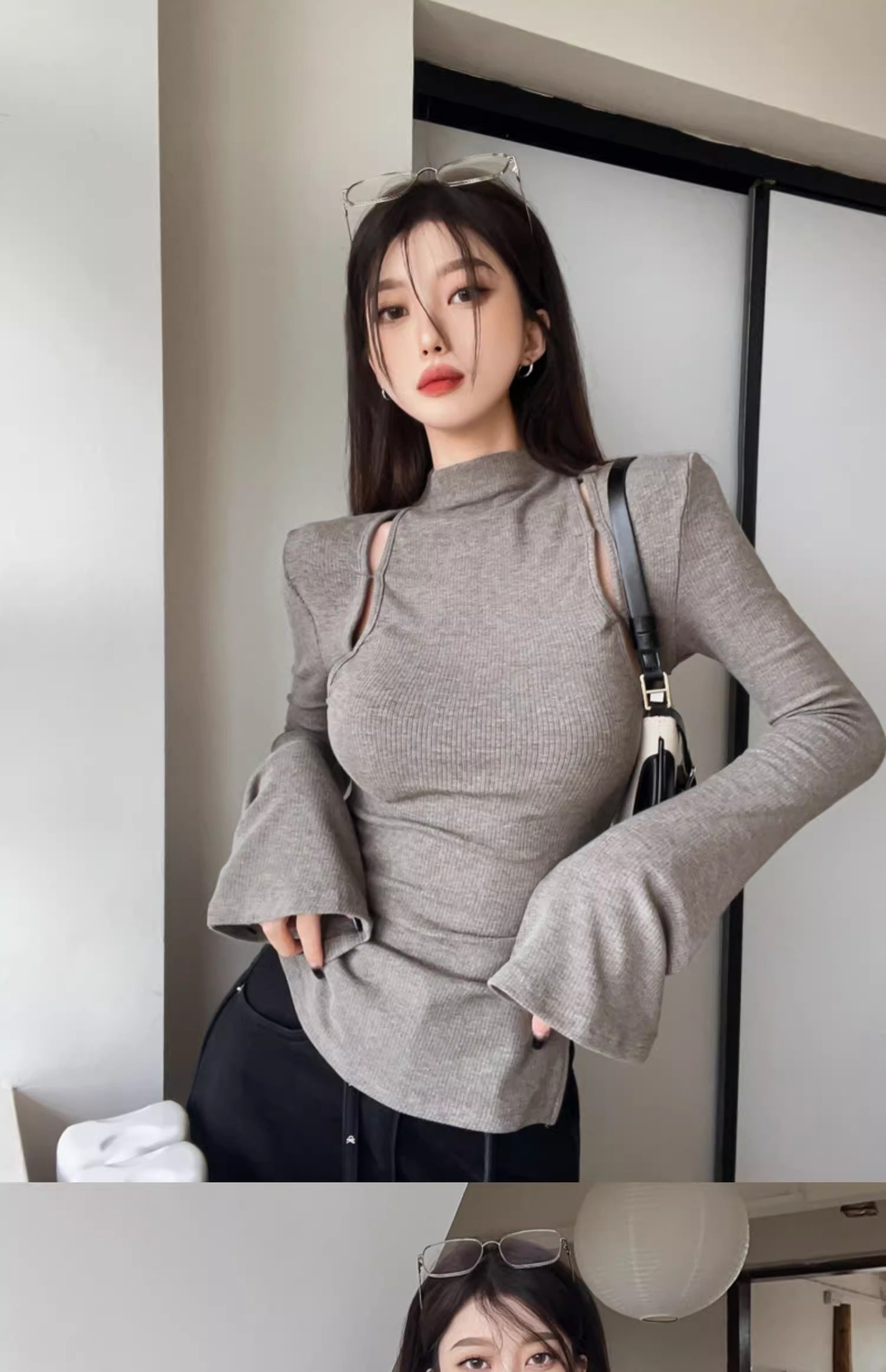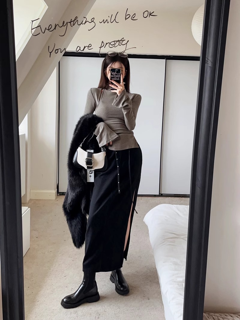 여성을위한 반 터틀넥 회색 바닥 셔츠 봄과 가을 내복 슬림 핏 슬리밍 순수한 욕망 스타일 핫 소녀 타이트 긴팔 티셔츠 탑스토어 가기