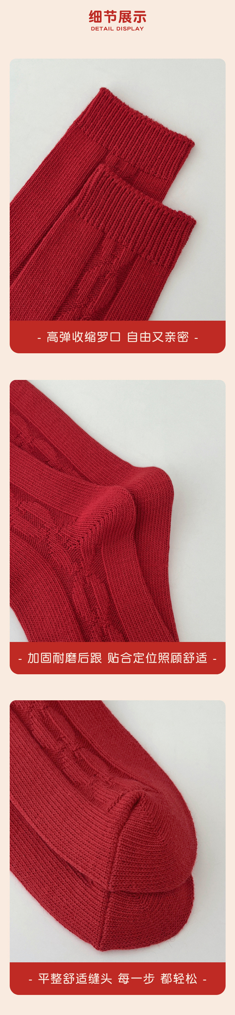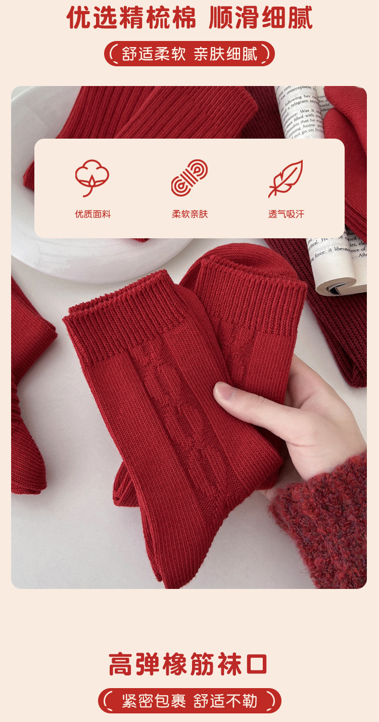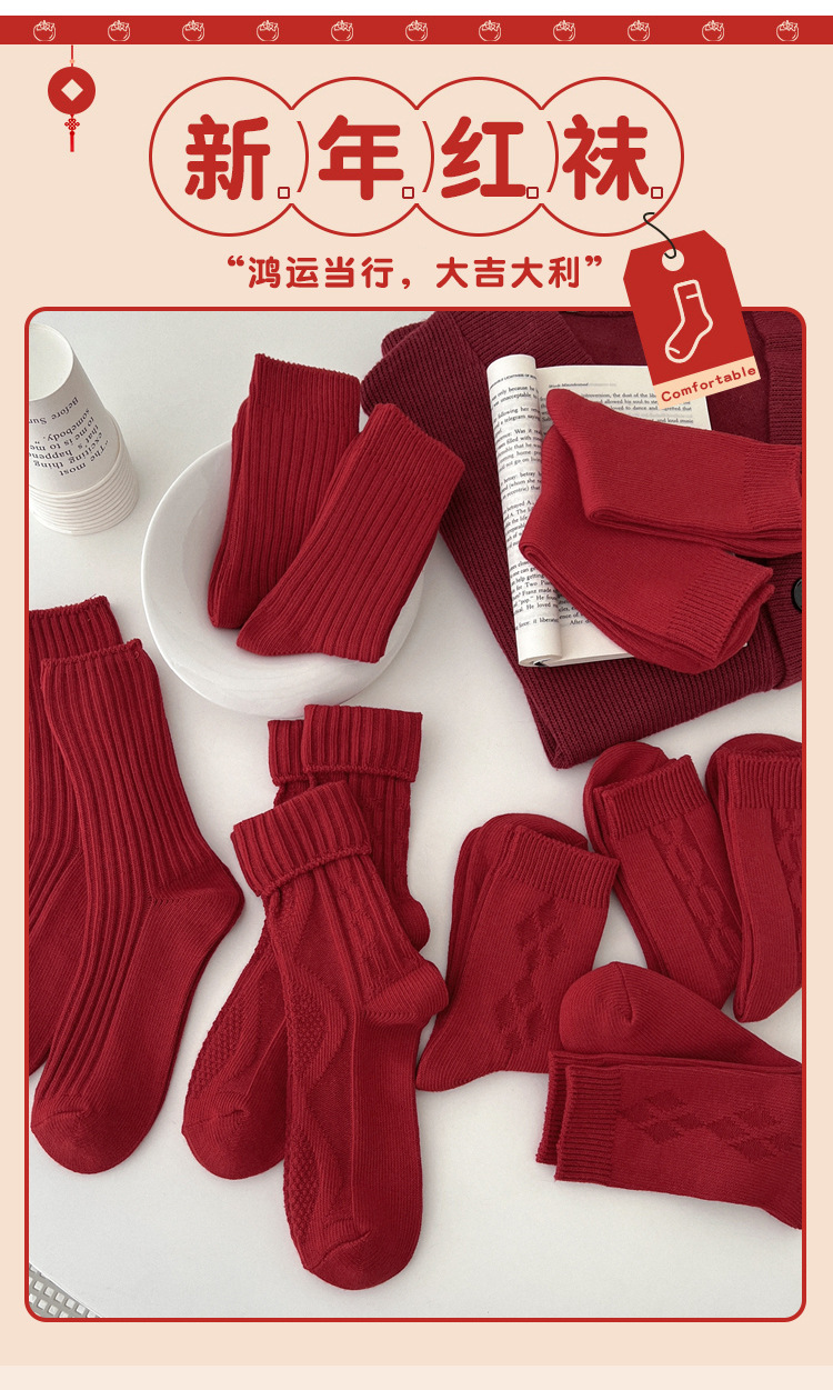 빨간 양말 여성의 유행 가을과 겨울 토끼 출생 년 중간 튜브 여성의 긴 튜브 새해 토끼 양모 복고풍 버건디스토어 가기