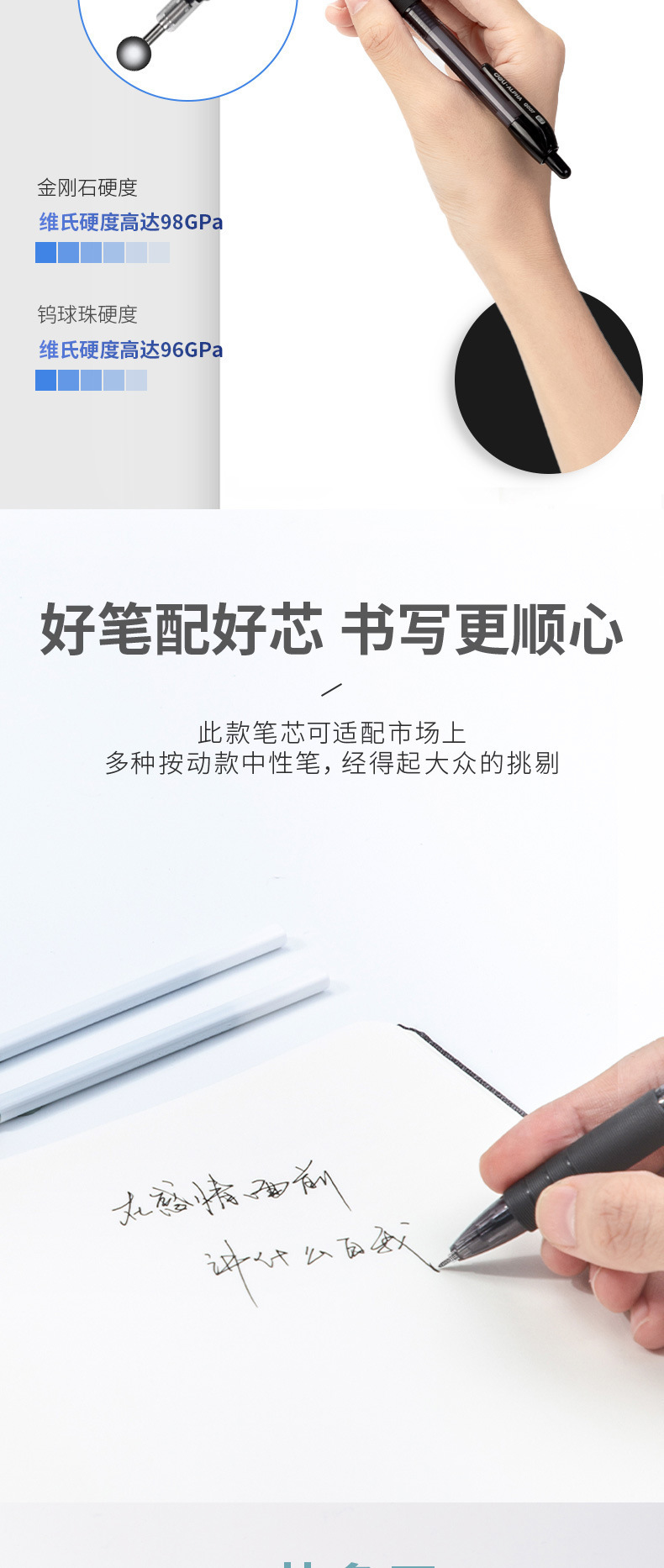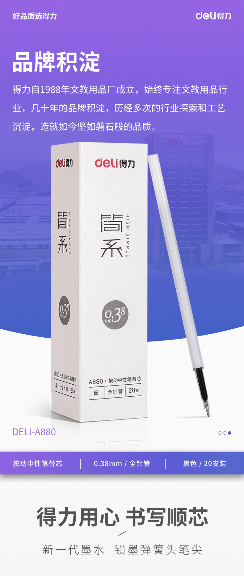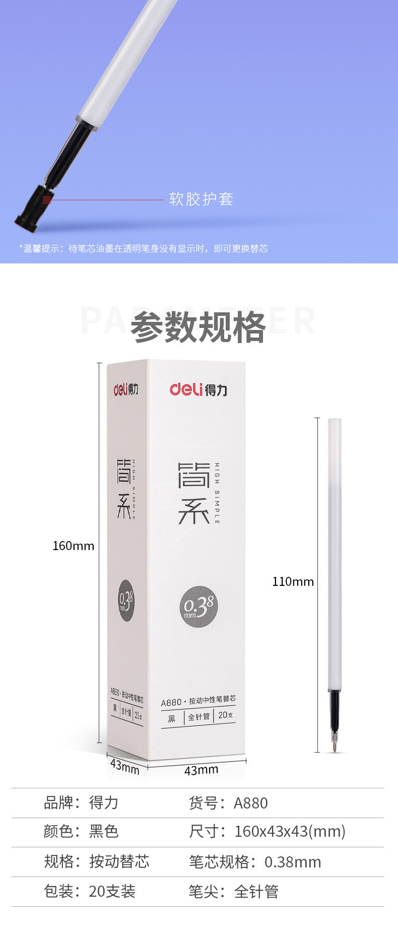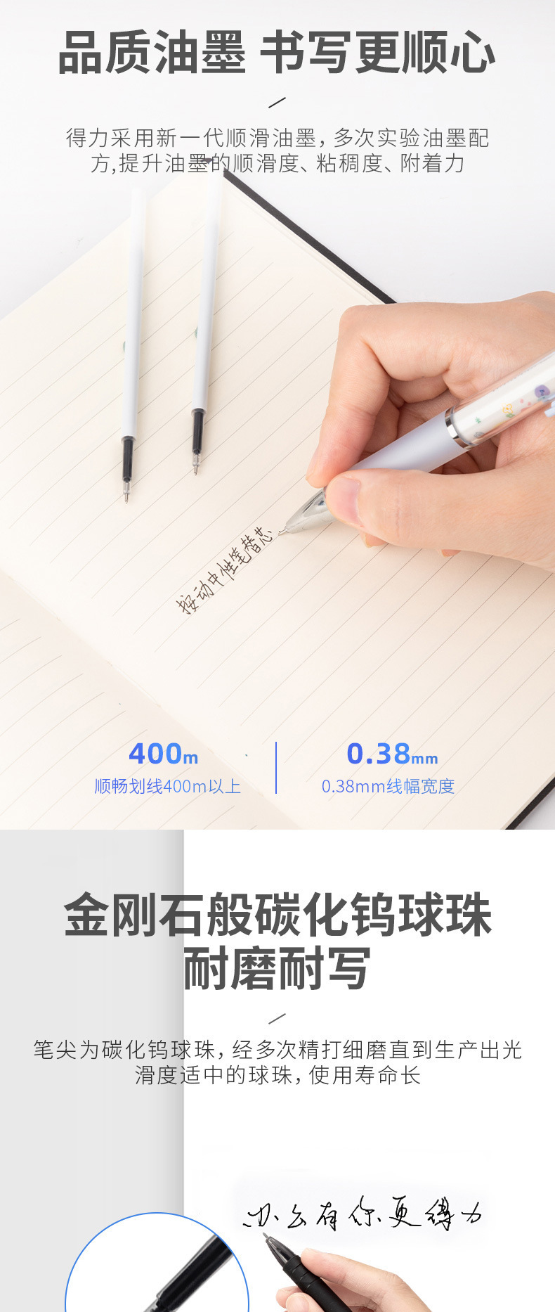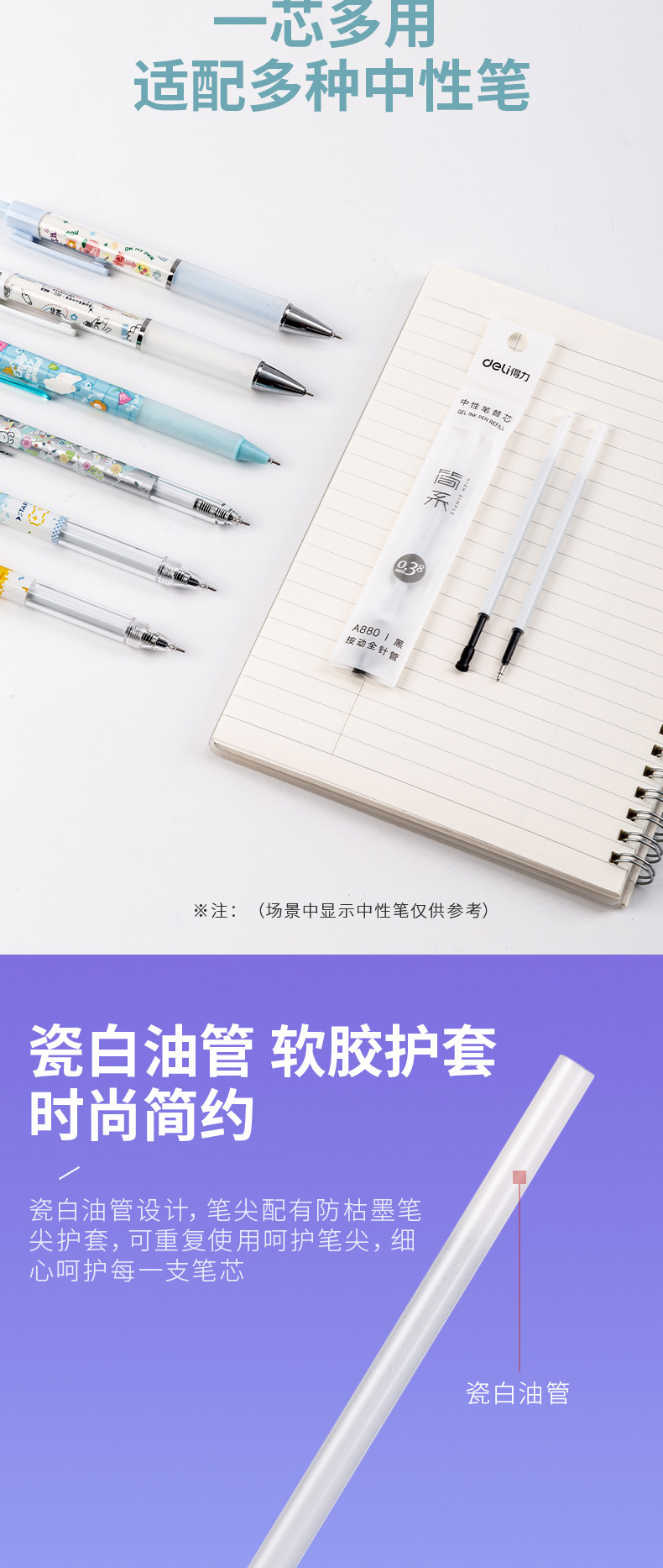 델리 문구 A880 제인 프레스 풀 바늘 중립 리필 0.38mm 흑인 학생 서명 펜 리필 배치