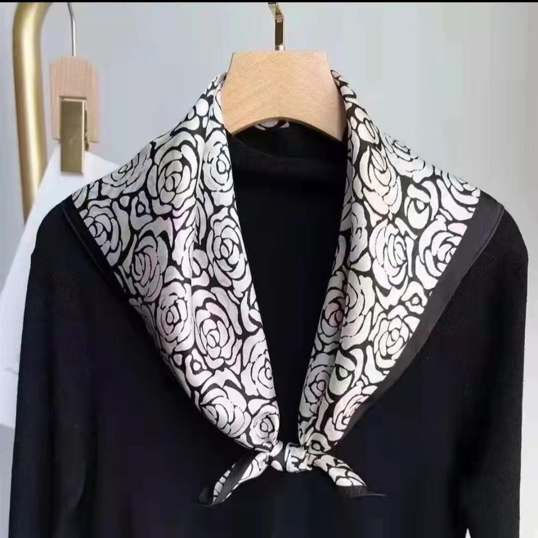 흑백 줄무늬 북유럽 스타일 간단한 우아한 작은 사각형 스카프 봄과 가을 새로운 한국 작은 스카프 전문 작은 스카프