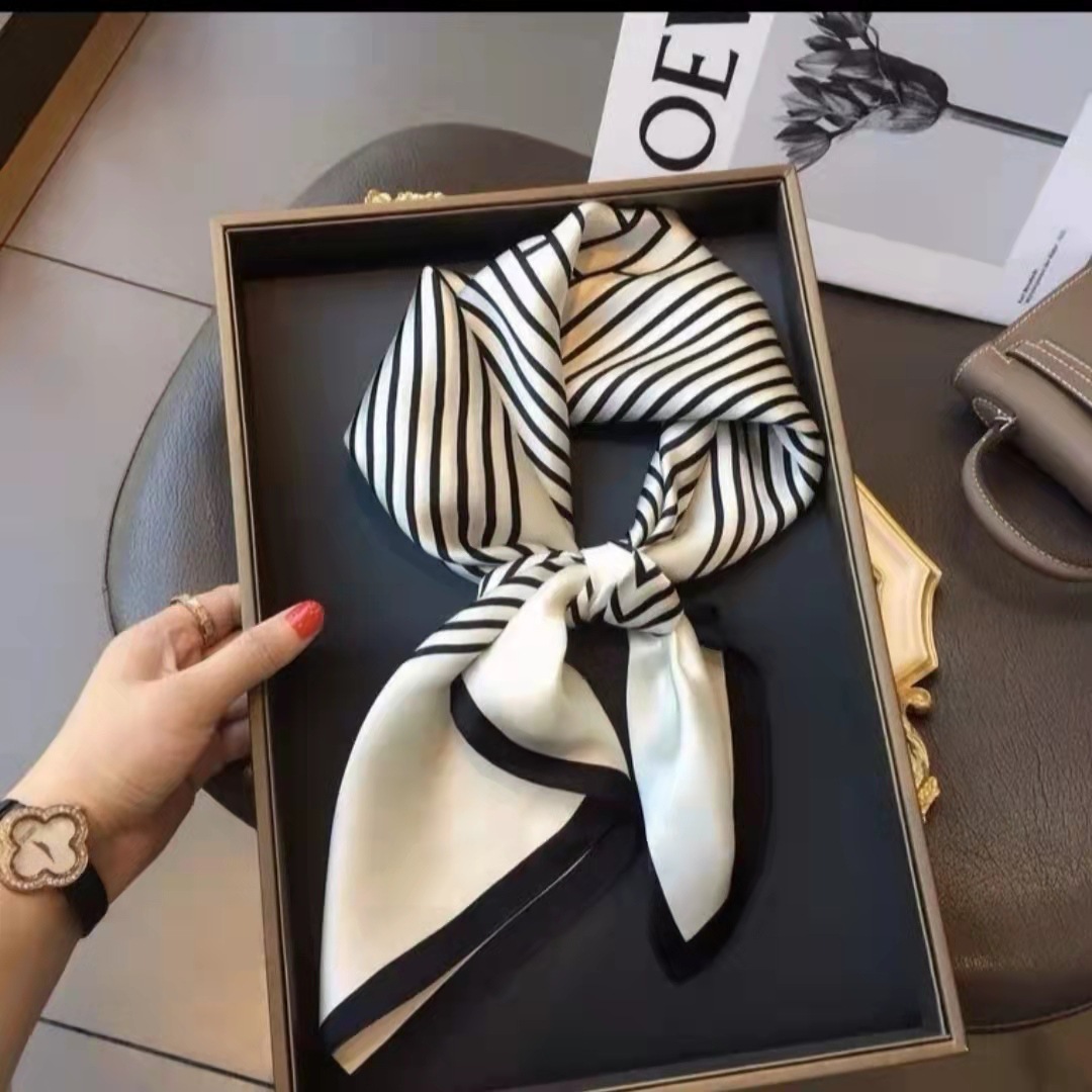 흑백 줄무늬 북유럽 스타일 간단한 우아한 작은 사각형 스카프 봄과 가을 새로운 한국 작은 스카프 전문 작은 스카프스토어 가기