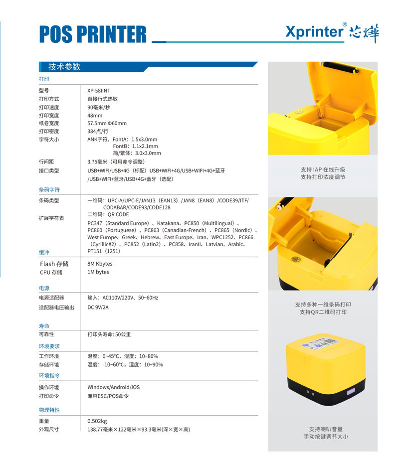 테이크 아웃 싱글 머신 코어 Ye 58IINT 클라우드 프린터 Meituan이 배고프다? 자동 주문 수신 TikTok 방문자 영수증