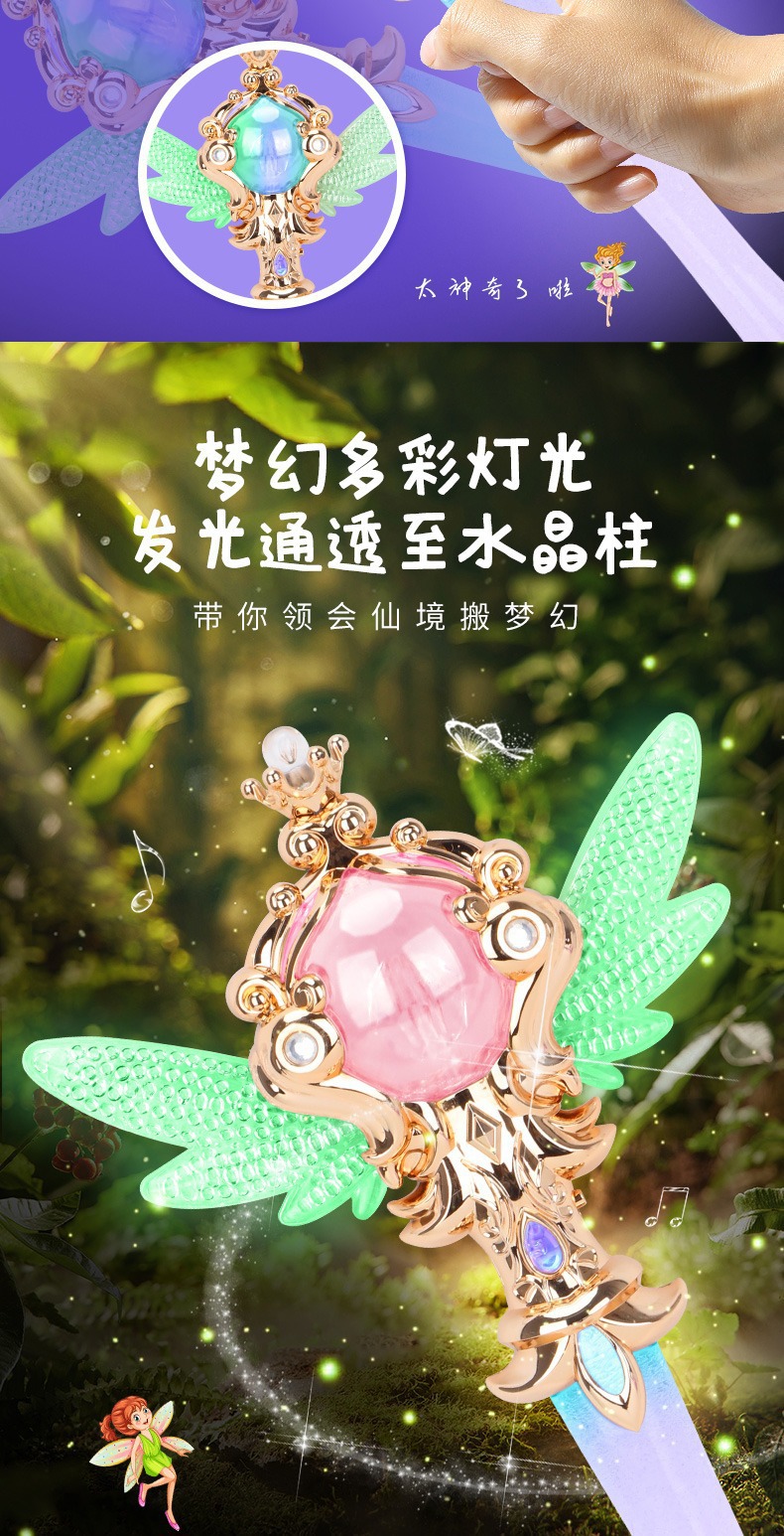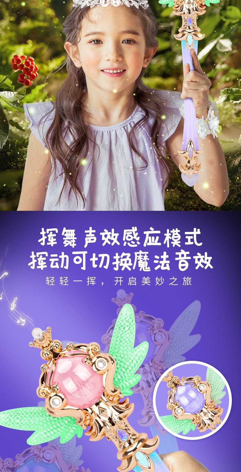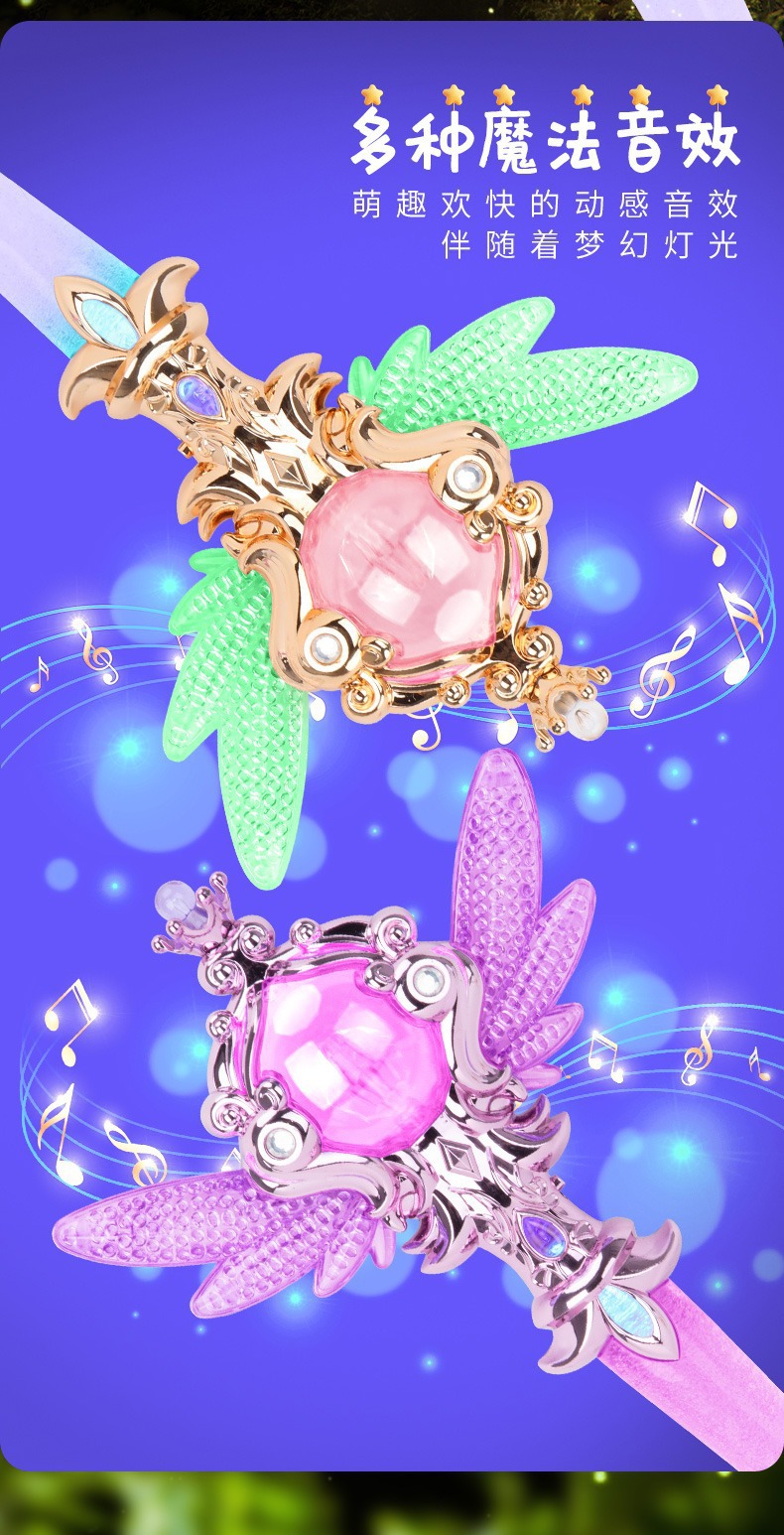 정품 어린이 공주 마술 지팡이 플래시 지팡이 빛나는 음악 소녀의 홀 장난감 생일 선물