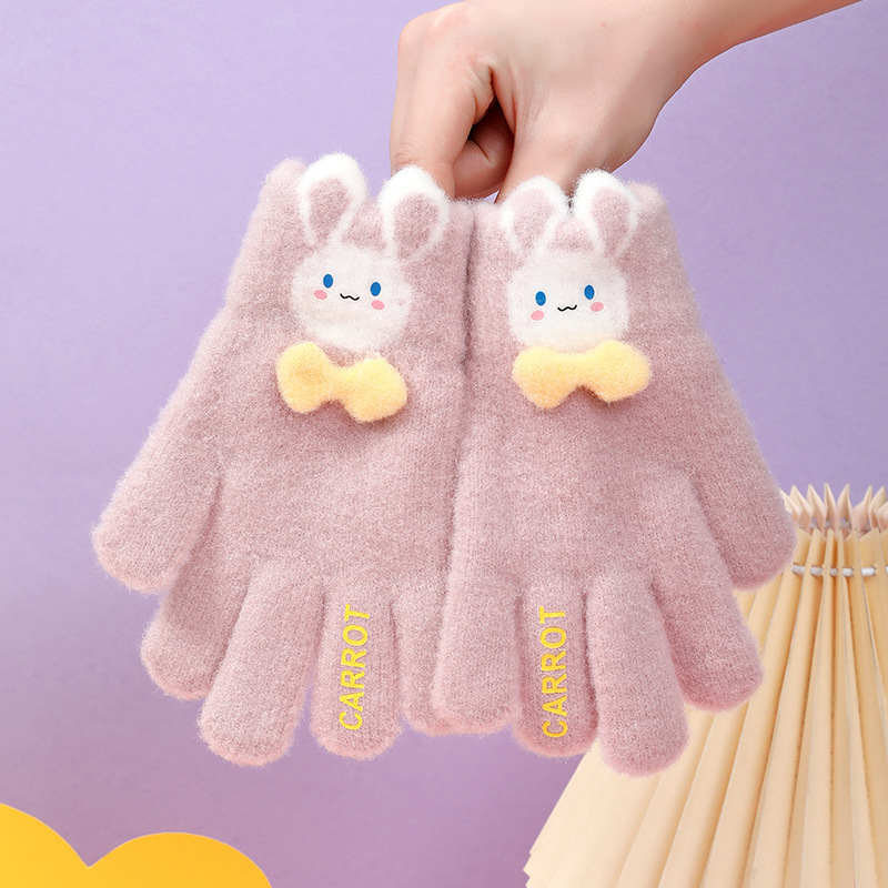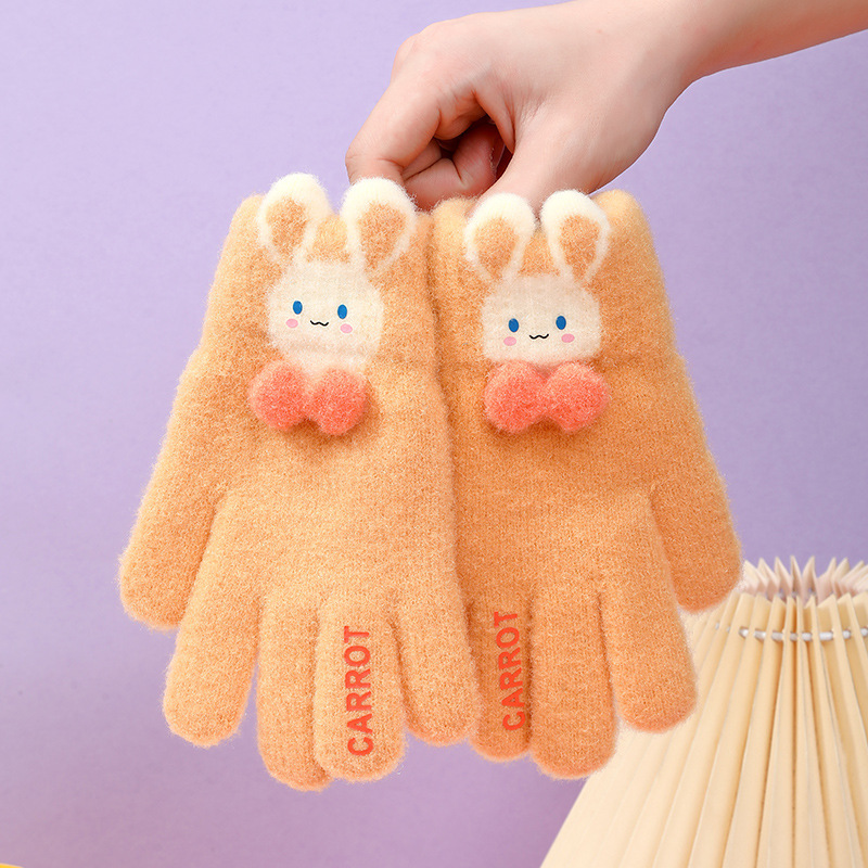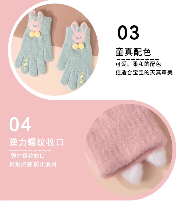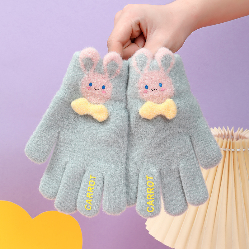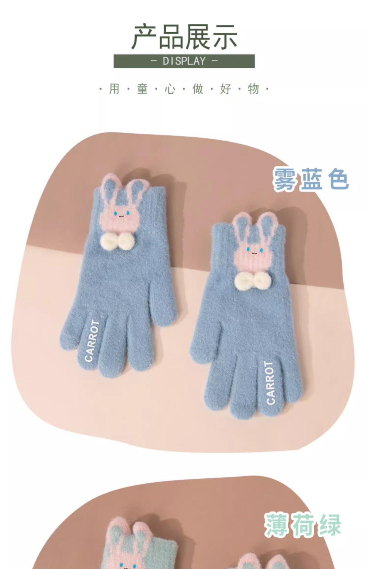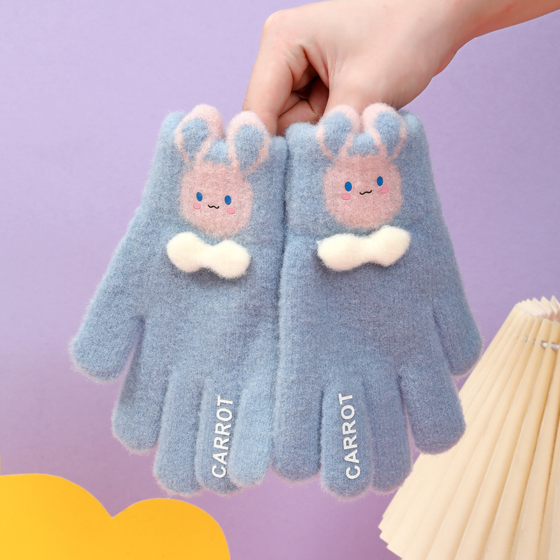 어린이 장갑 겨울 따뜻한 10-15 세 학생 귀여운 만화 토끼 두꺼운 벨벳 야외 장갑스토어 가기