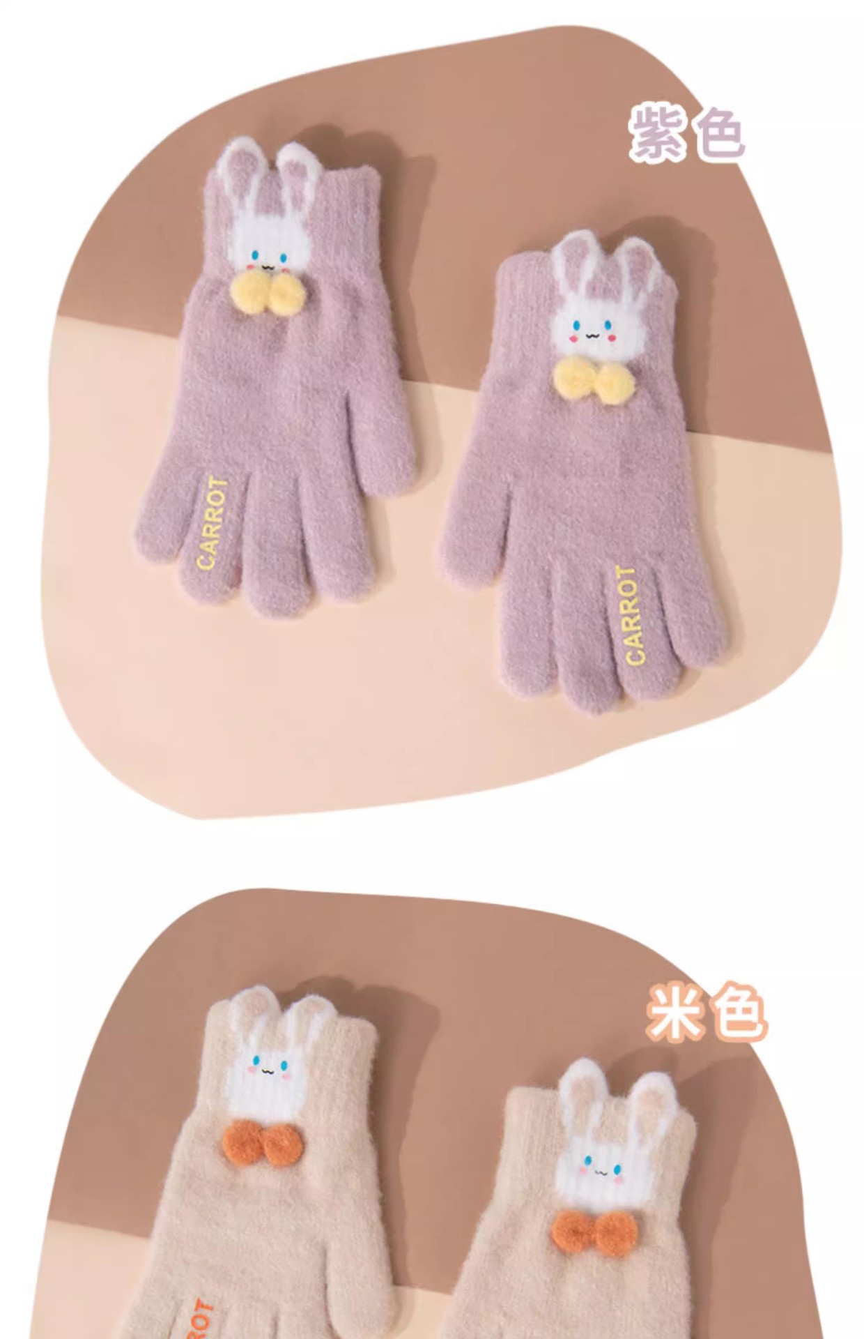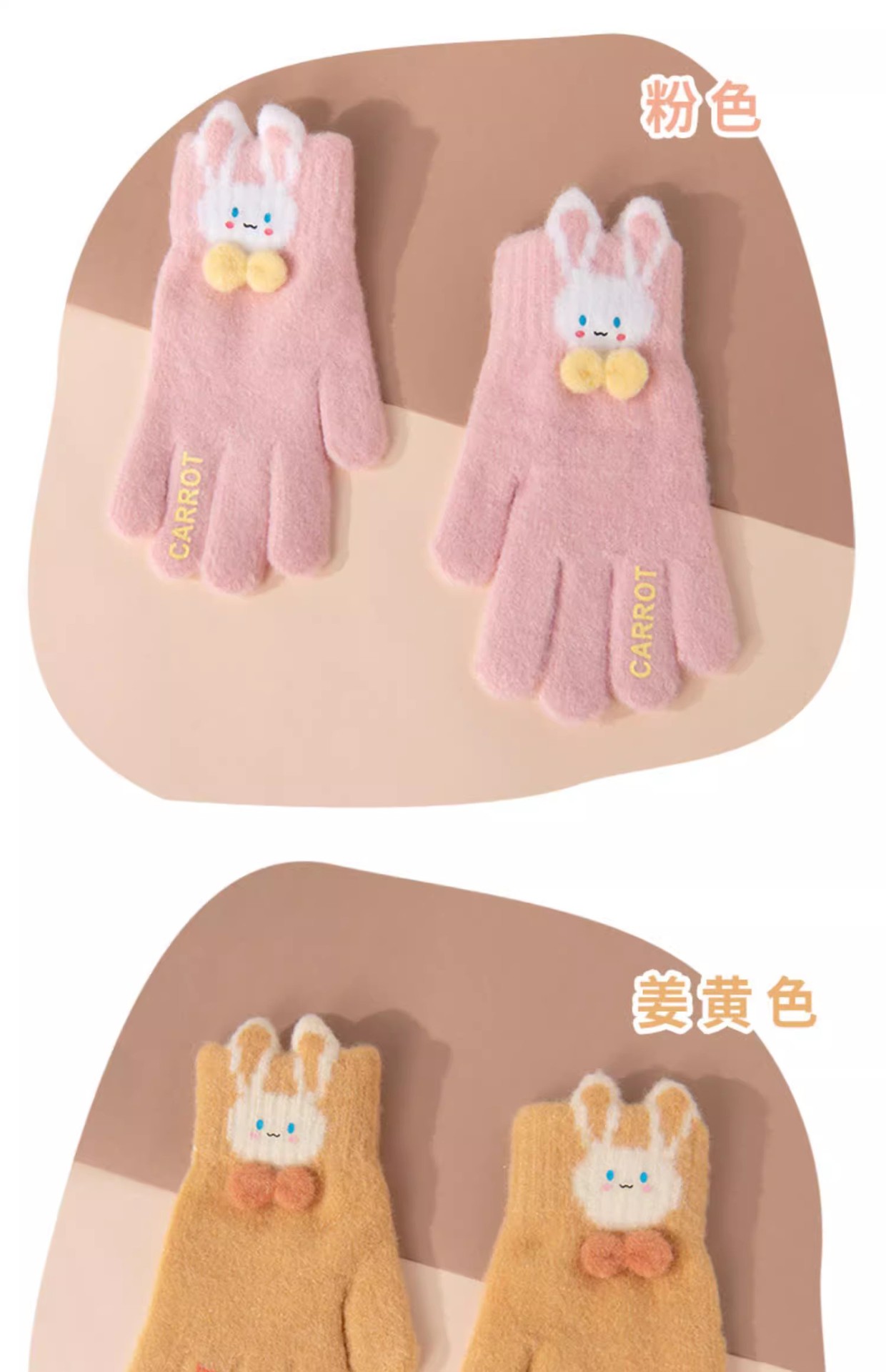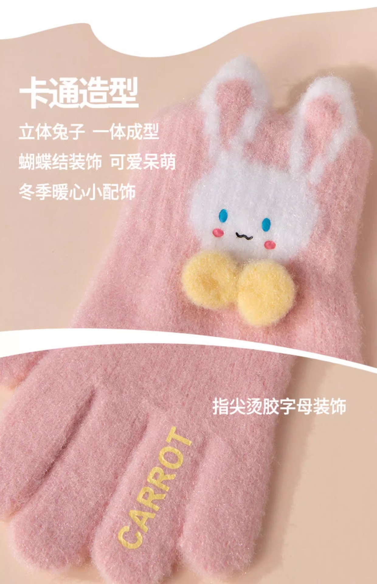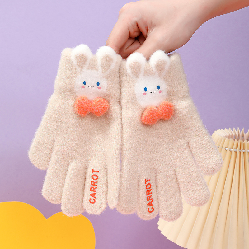 어린이 장갑 겨울 따뜻한 10-15 세 학생 귀여운 만화 토끼 두꺼운 벨벳 야외 장갑스토어 가기