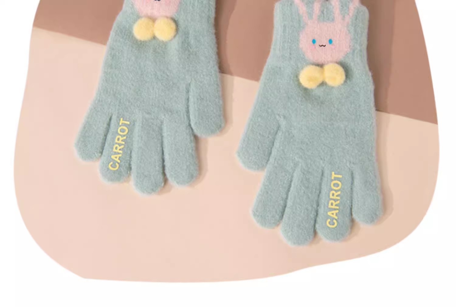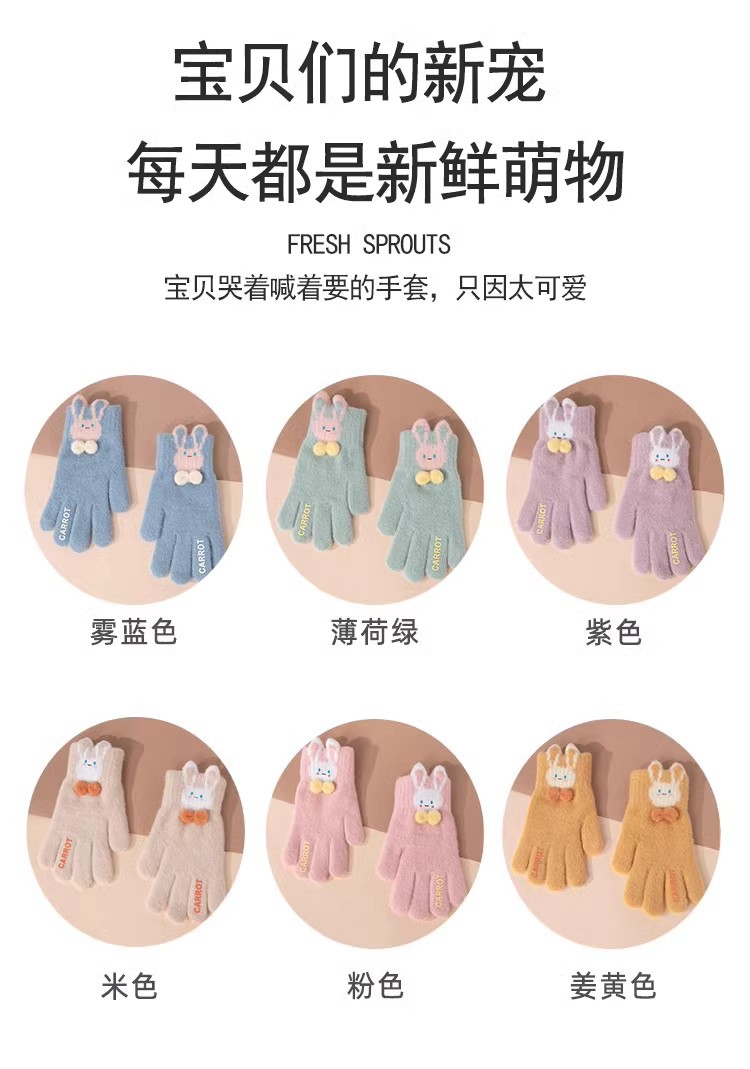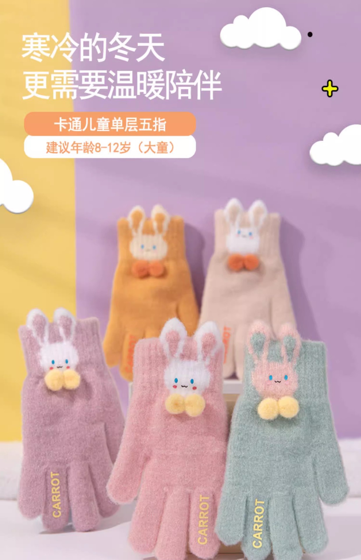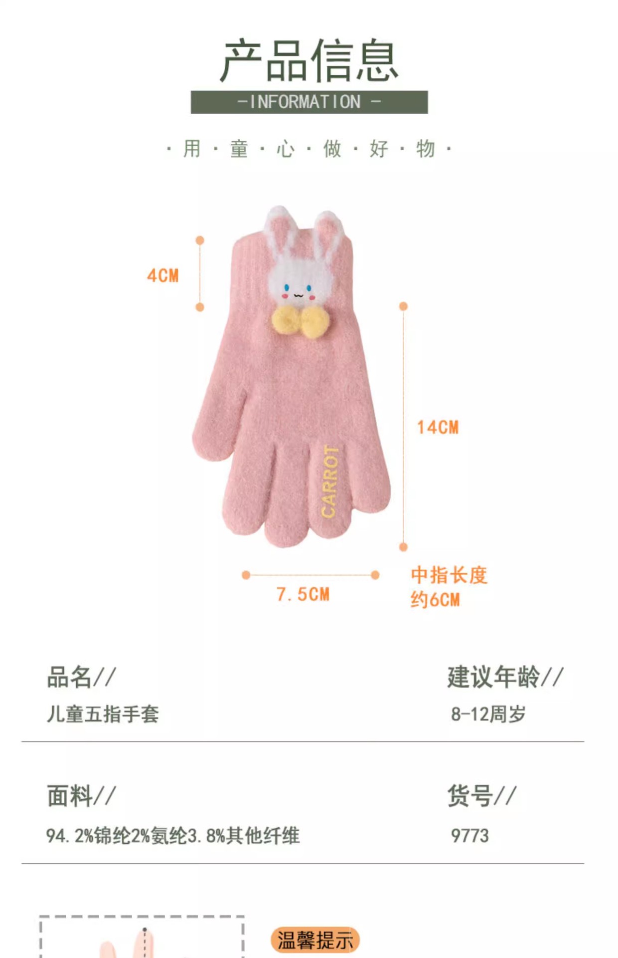 어린이 장갑 겨울 따뜻한 10-15 세 학생 귀여운 만화 토끼 두꺼운 벨벳 야외 장갑스토어 가기