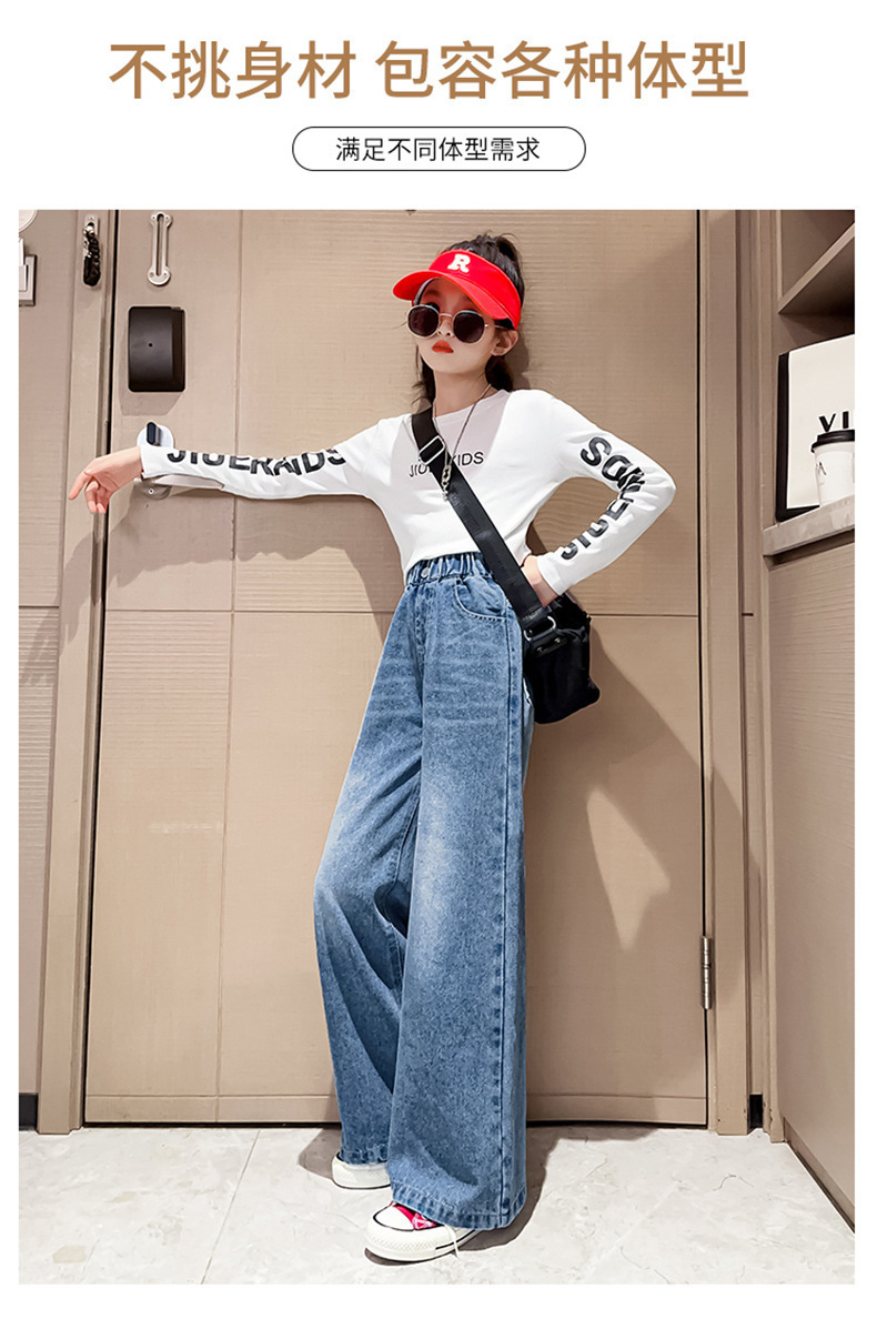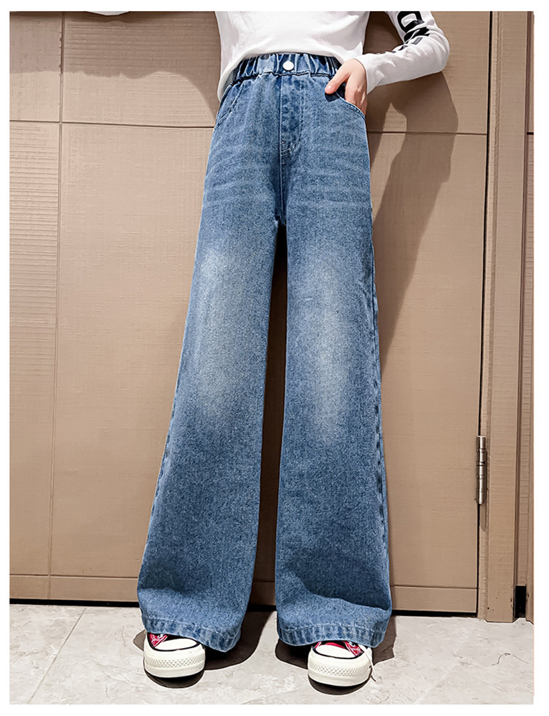 아마존 소녀 봄과 가을 2024 한국식 중대형 어린이 서양식 대형 플레어 데님 넓은 다리 바지 조롱 도매스토어 가기