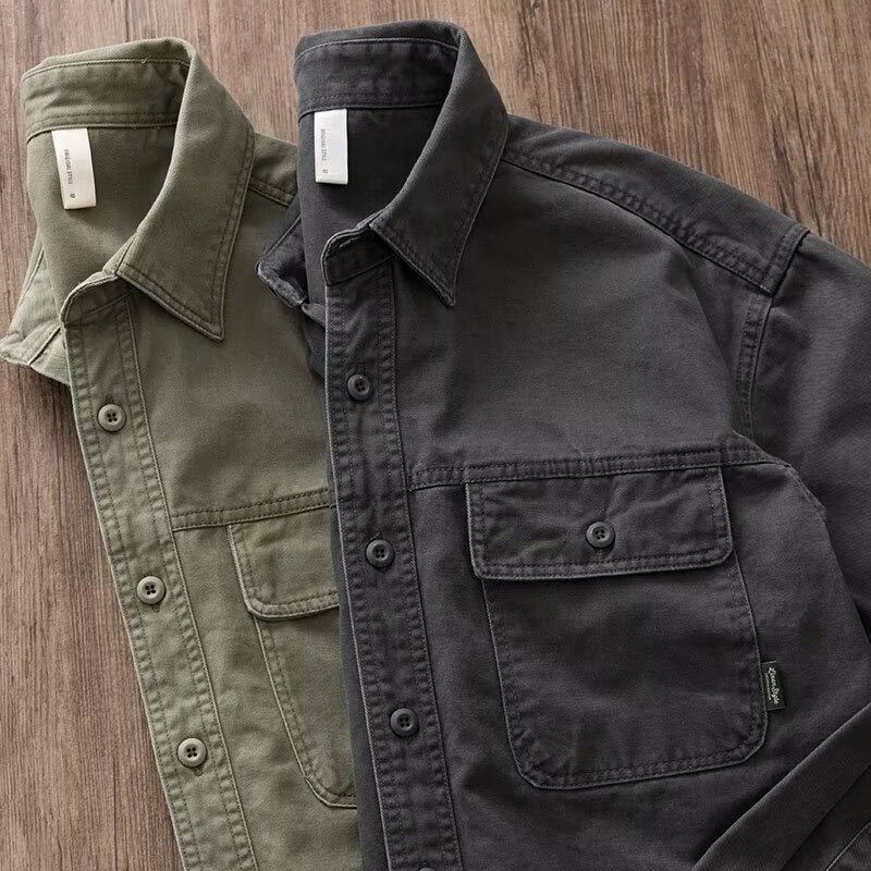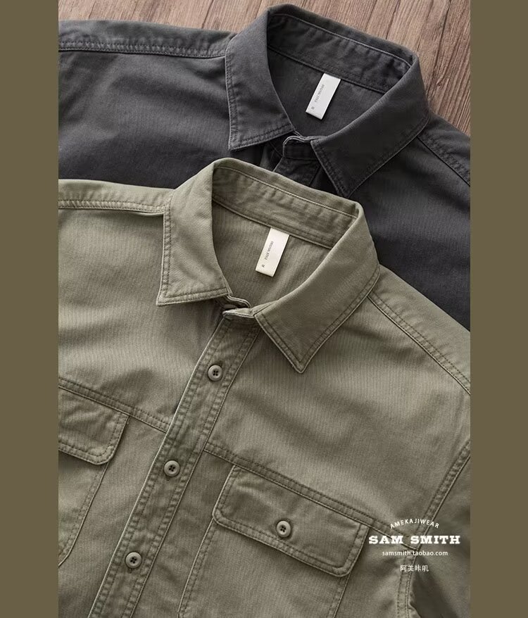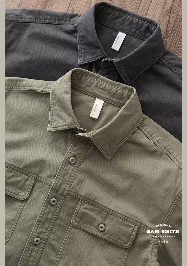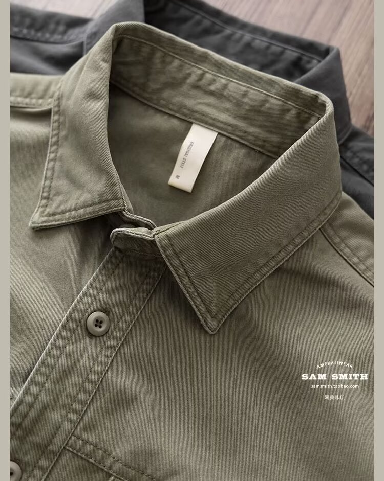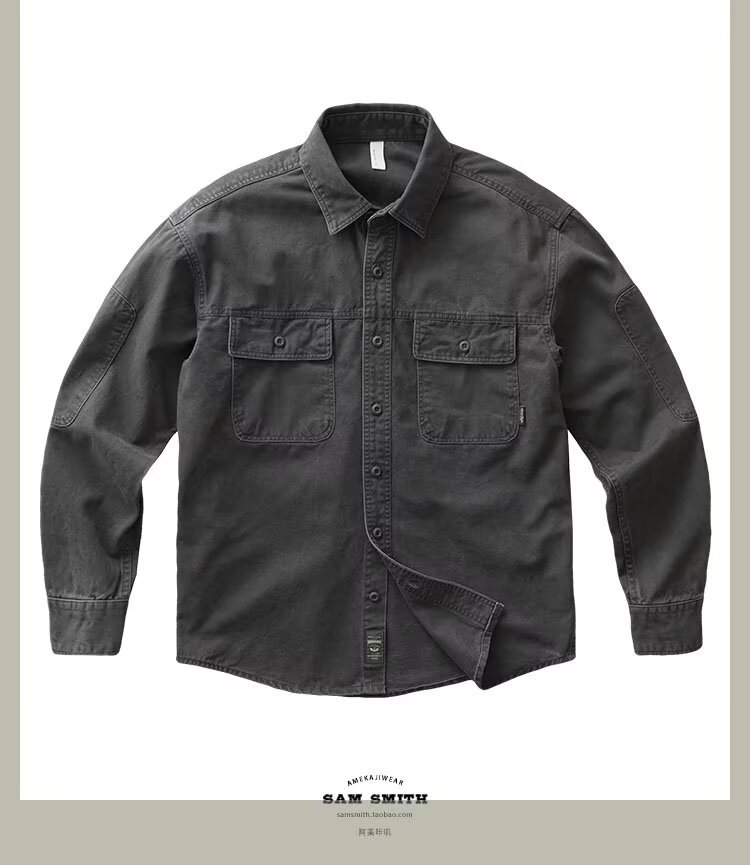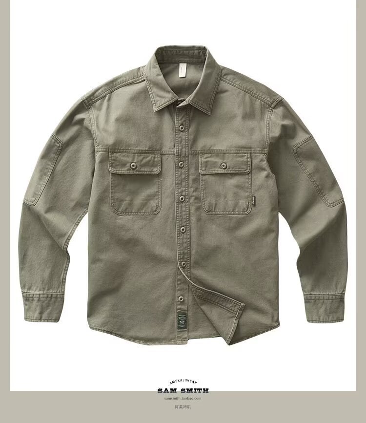 일본 스타일 트렌디 한 브랜드 헤비 워크 셔츠 남자의 두꺼운 티 루즈 미국 스타일 레트로 봄과 가을 카키 셔츠 재킷스토어 가기
