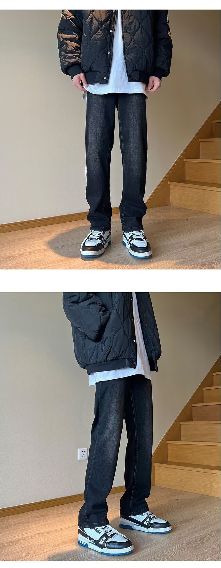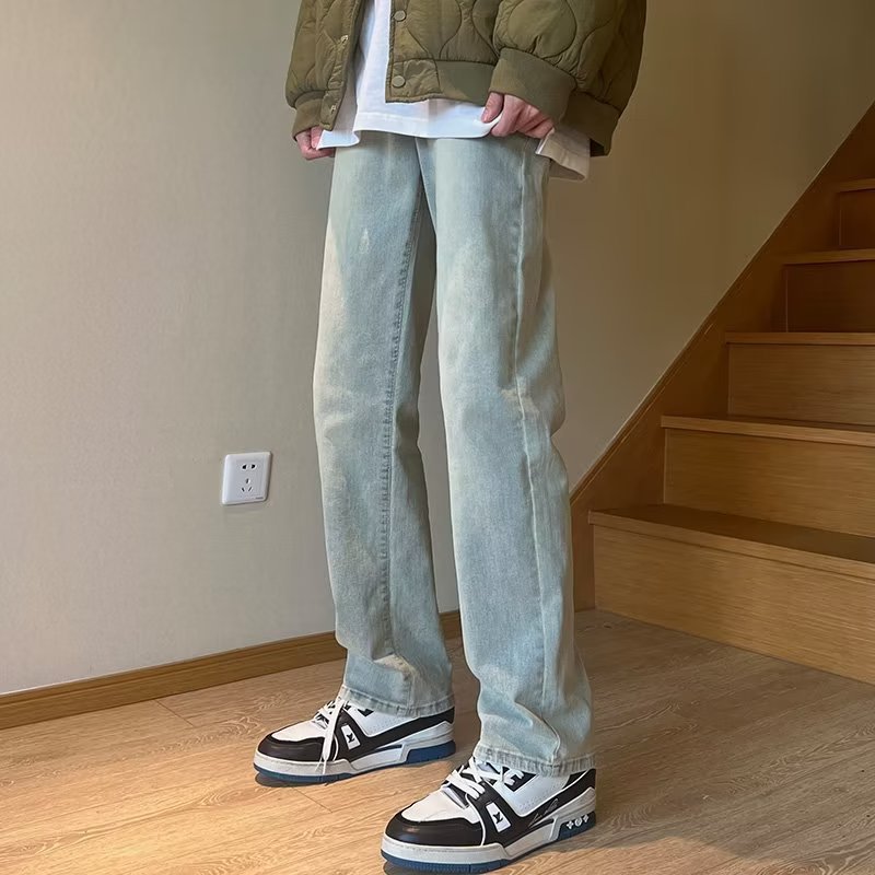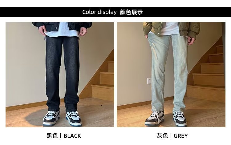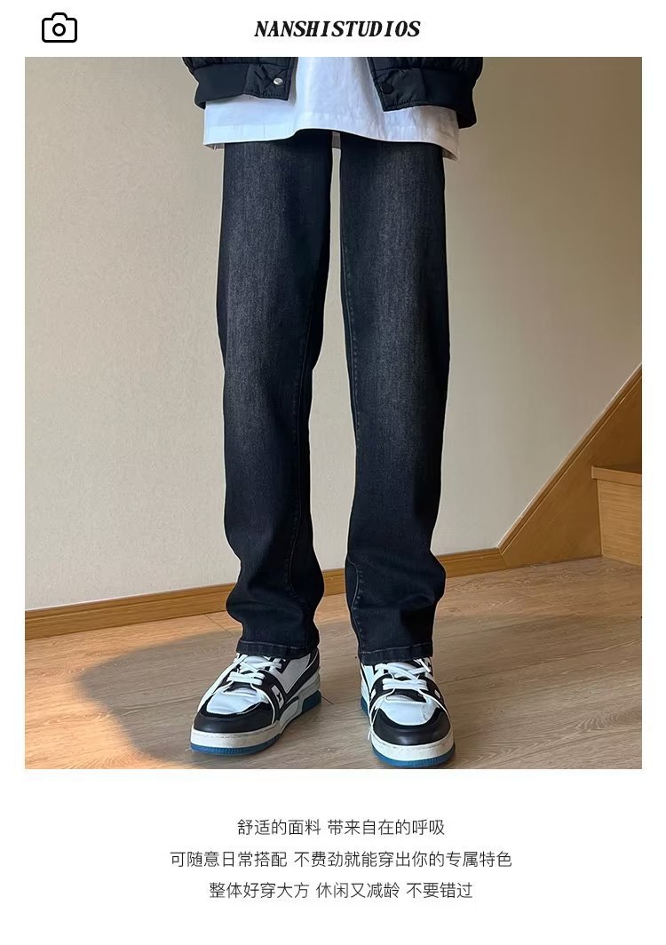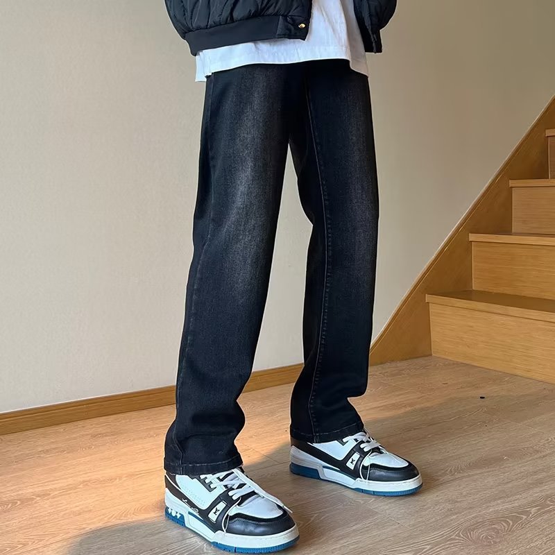 높은 탄성 블랙 청바지 남성 가을 미국 하이 스트리트 패션 브랜드 느슨한 스트레이트 슬림 핏 스키니 캐주얼 바지스토어 가기
