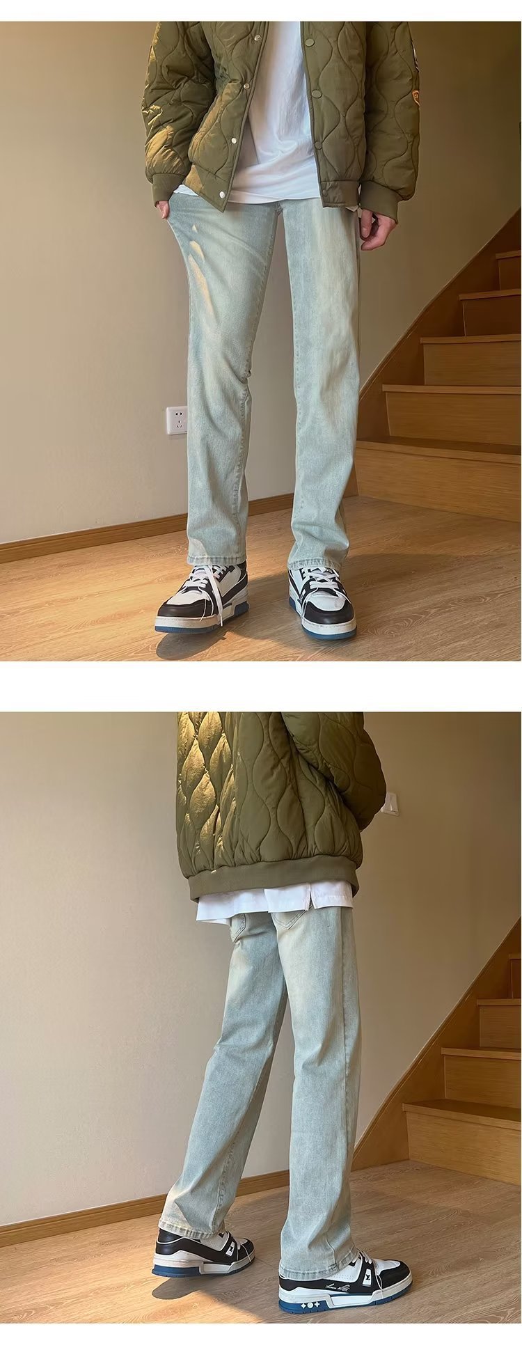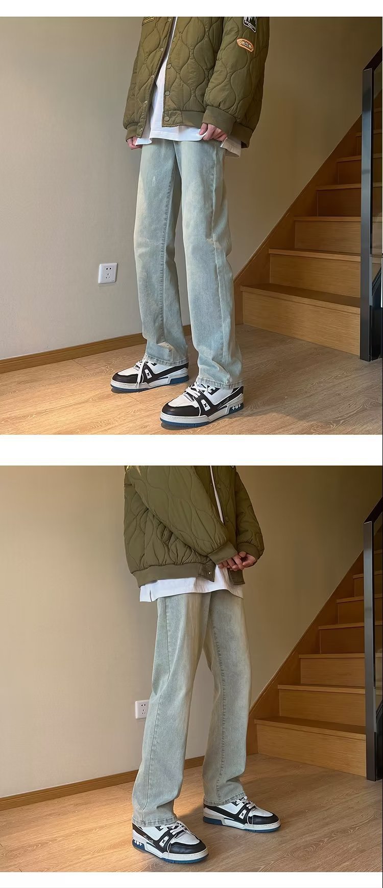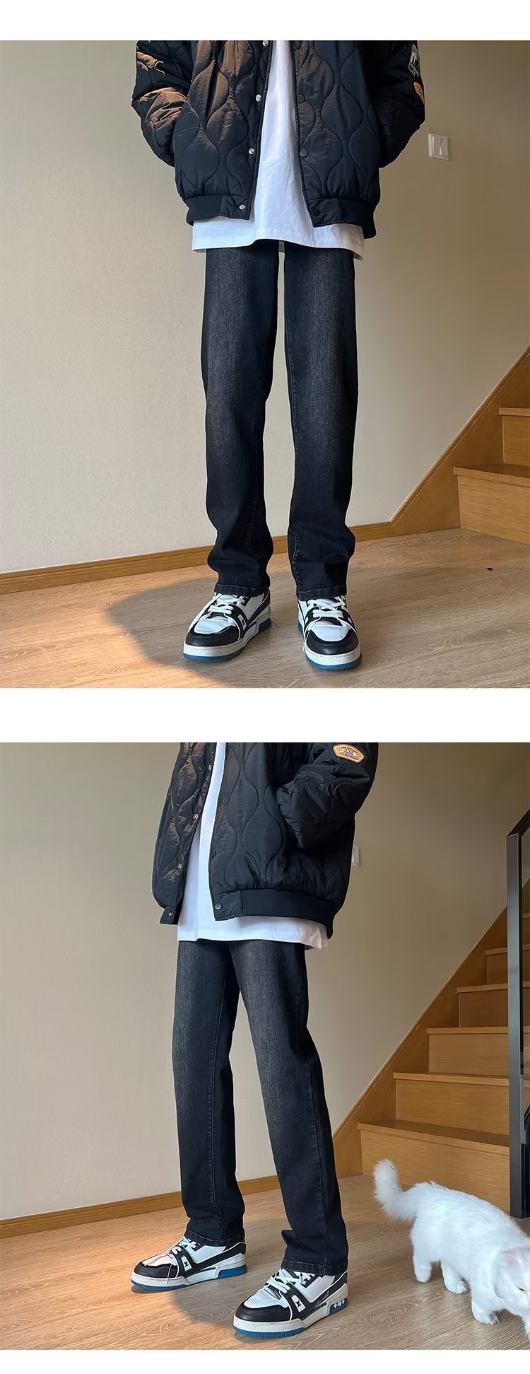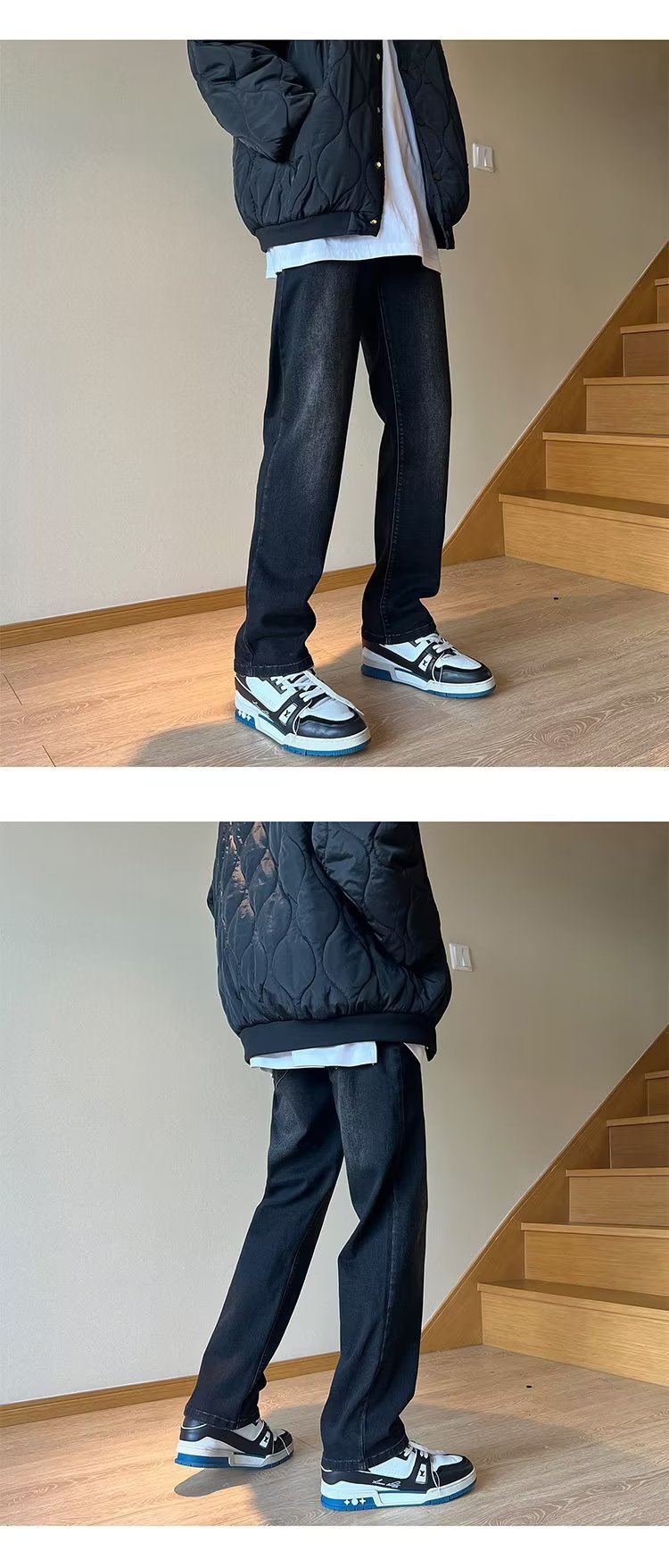 높은 탄성 블랙 청바지 남성 가을 미국 하이 스트리트 패션 브랜드 느슨한 스트레이트 슬림 핏 스키니 캐주얼 바지스토어 가기