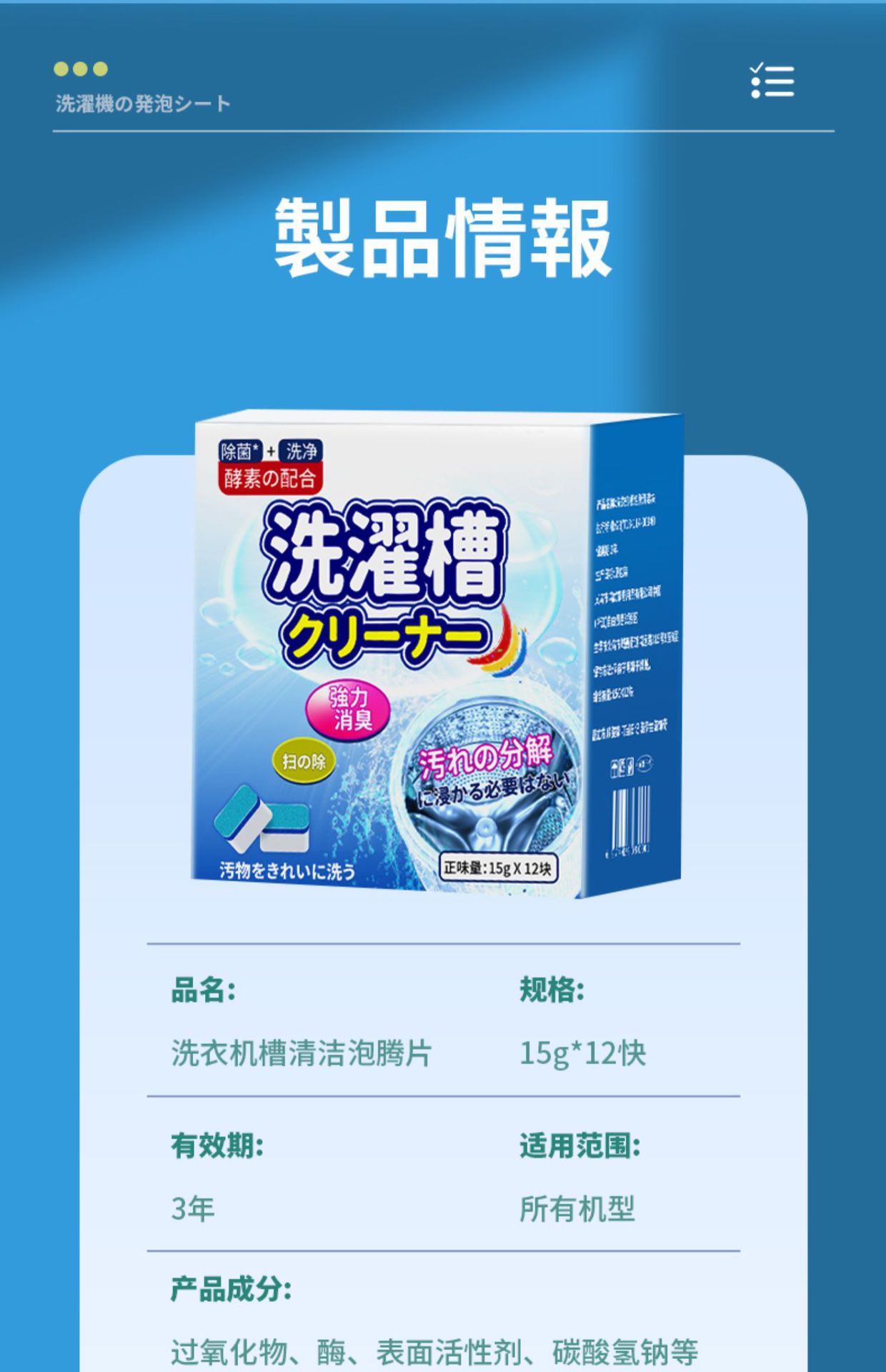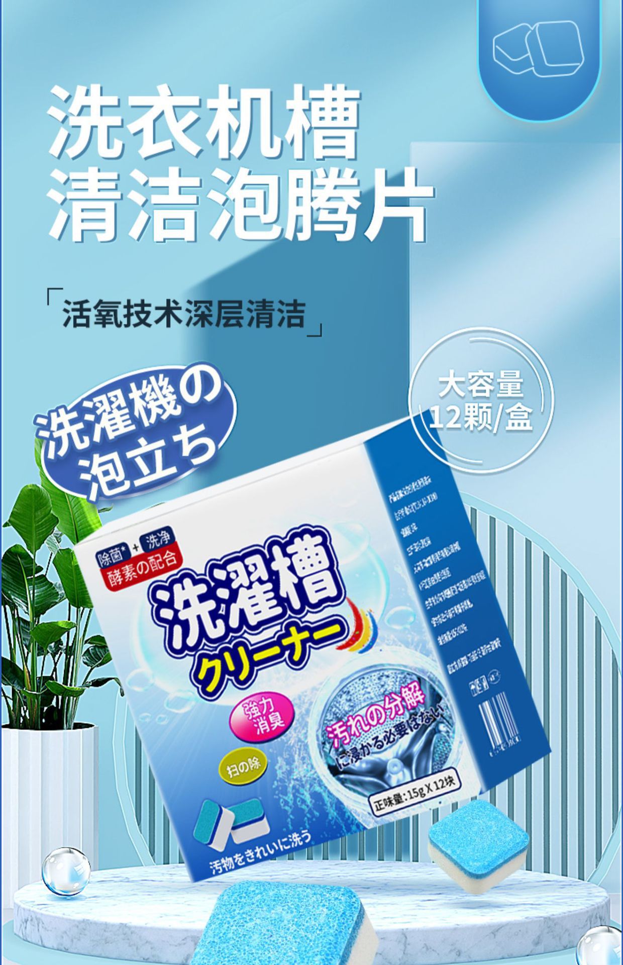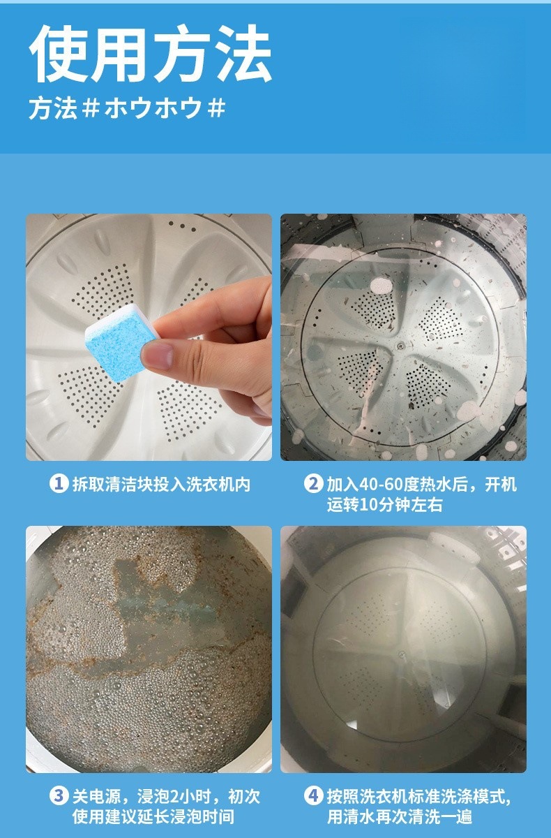 세탁기 탱크 세척제 강력한 석회질 제거 발포성 청소 정제 소스 공장 드롭 배송스토어 가기
