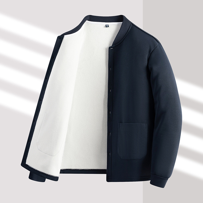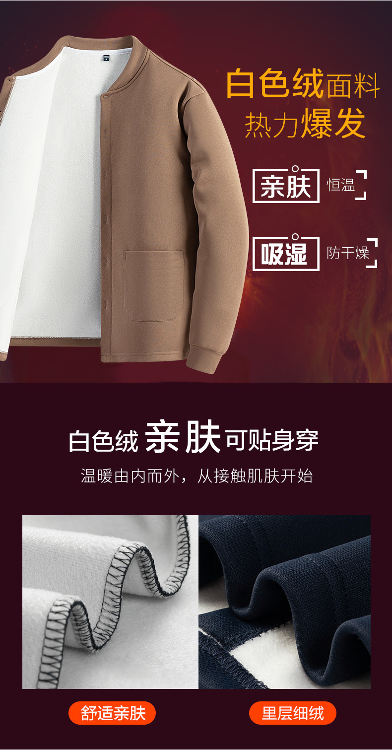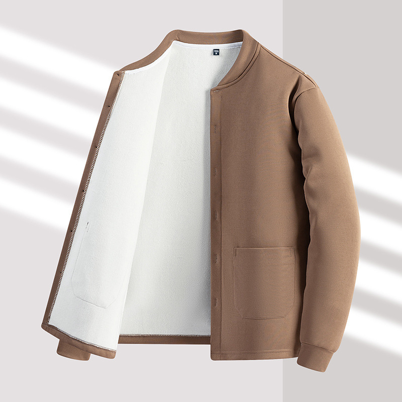 원피스 배달 겨울 포켓 남성용 기모 두꺼운 카디건 중년 및 노인 아빠는 긴 소매 따뜻한 코트 탑을 입습니다.스토어 가기