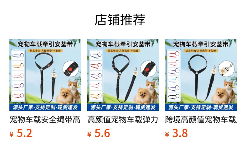 애완동물 용품 강아지 목줄 도매 자동차 견인 패드 고정줄 차량용 안전벨트 고강도 폴리에스터스토어 가기