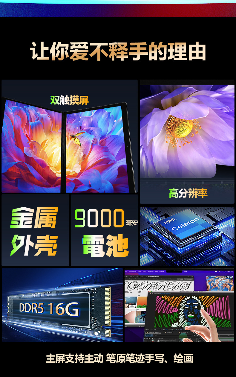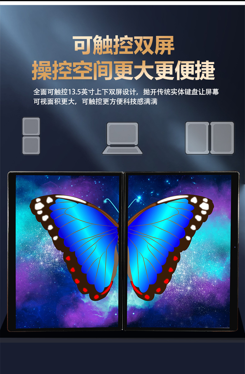 다중 화면 노트북 13.5인치 접이식 화면 듀얼 터치스크린 사무용 게임용 휴대용 접이식 화면 노트북스토어 가기