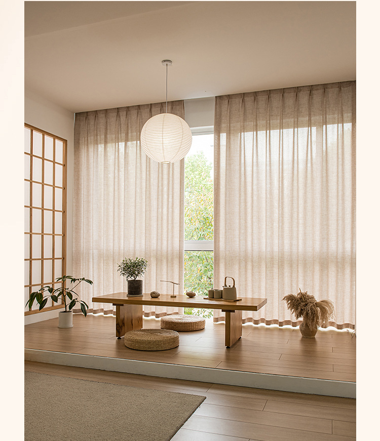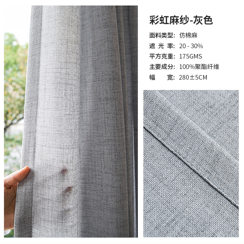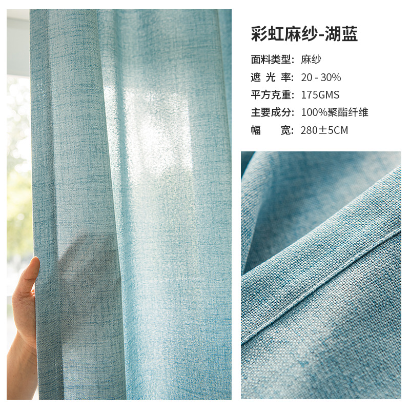 일본식 간단한 린넨 투명 무지개 린넨 린넨 질감 발코니 침실 베이 창 커튼 스크린