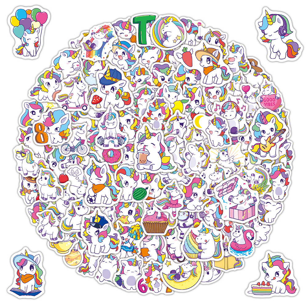국경 간 새로운 유니콘 스티커 100 귀여운 만화 낙서 가방 물 컵 별이 빛나는 하늘 무지개 말 스티커