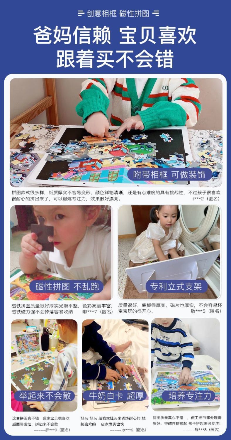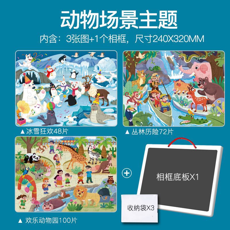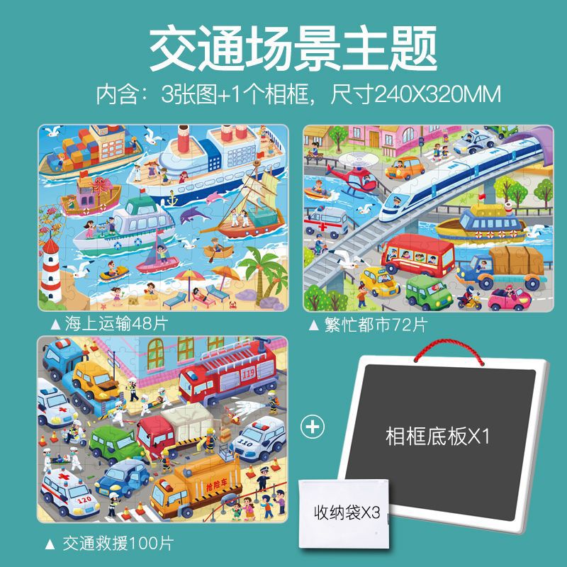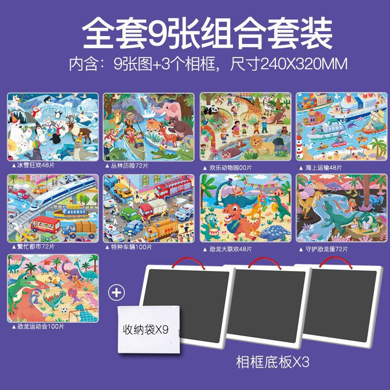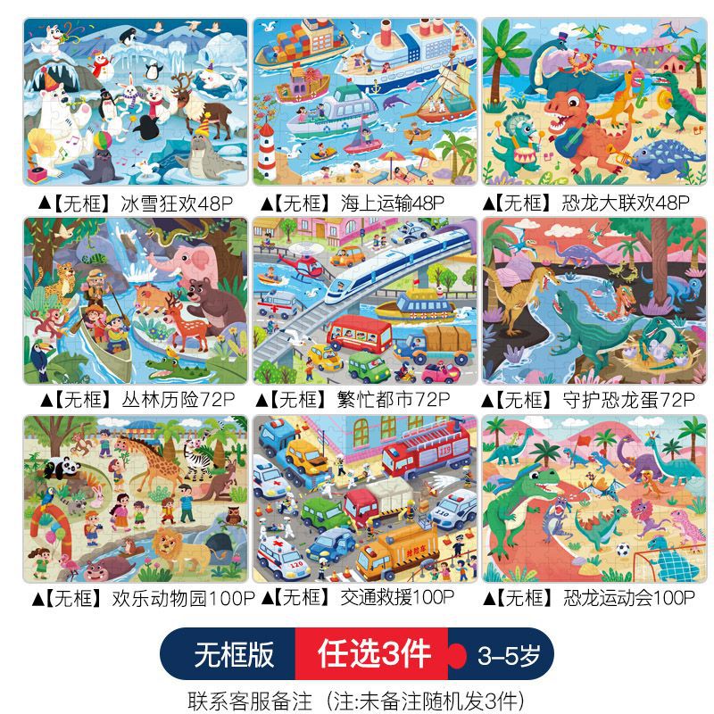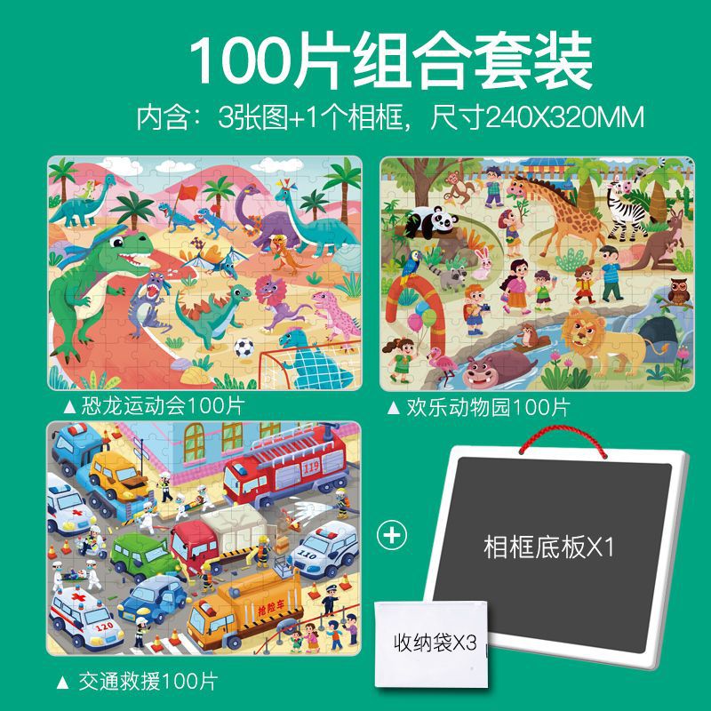 3-6 세 이상의베이스 보드 어린이 교육 장난감이있는 아기를위한 프레임이있는 100 조각 만화 퍼즐 큰 크기의 기초없는 그림스토어 가기