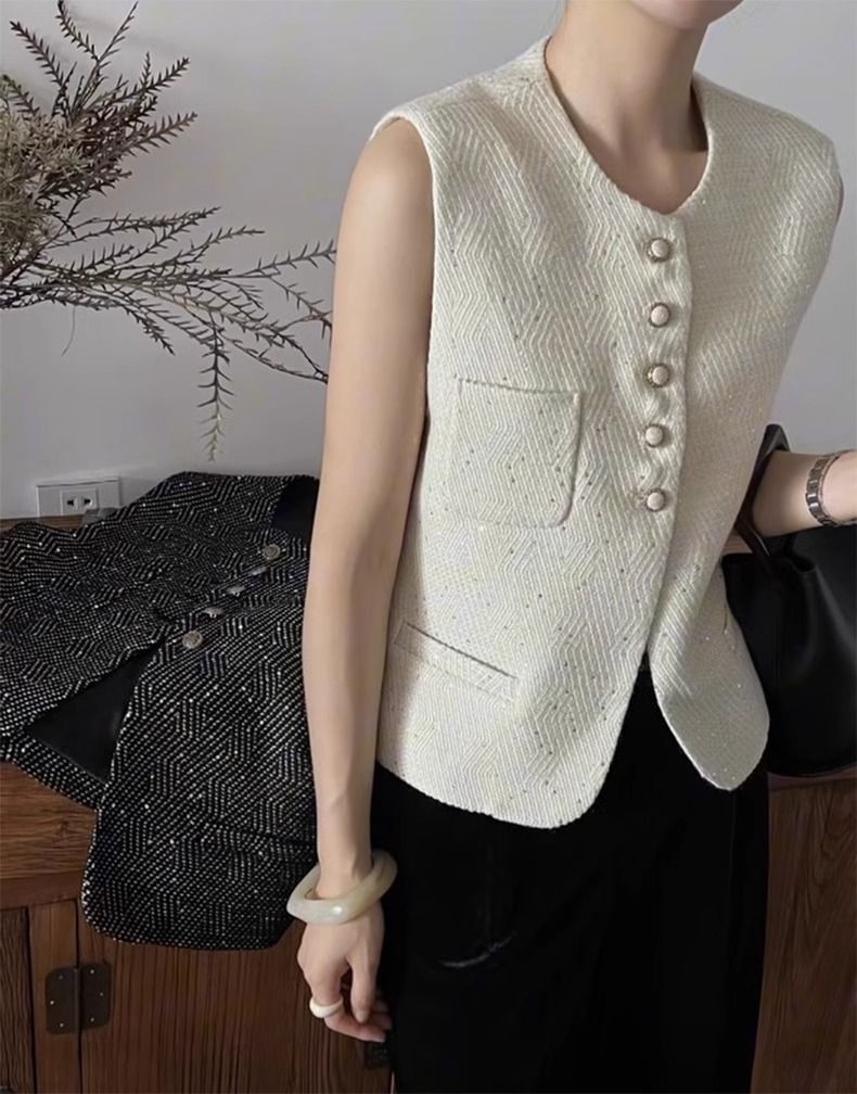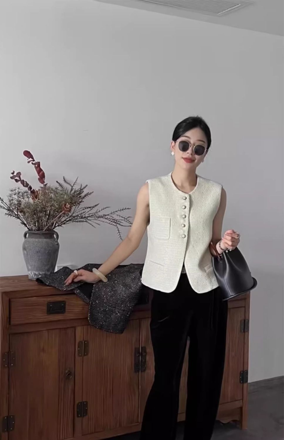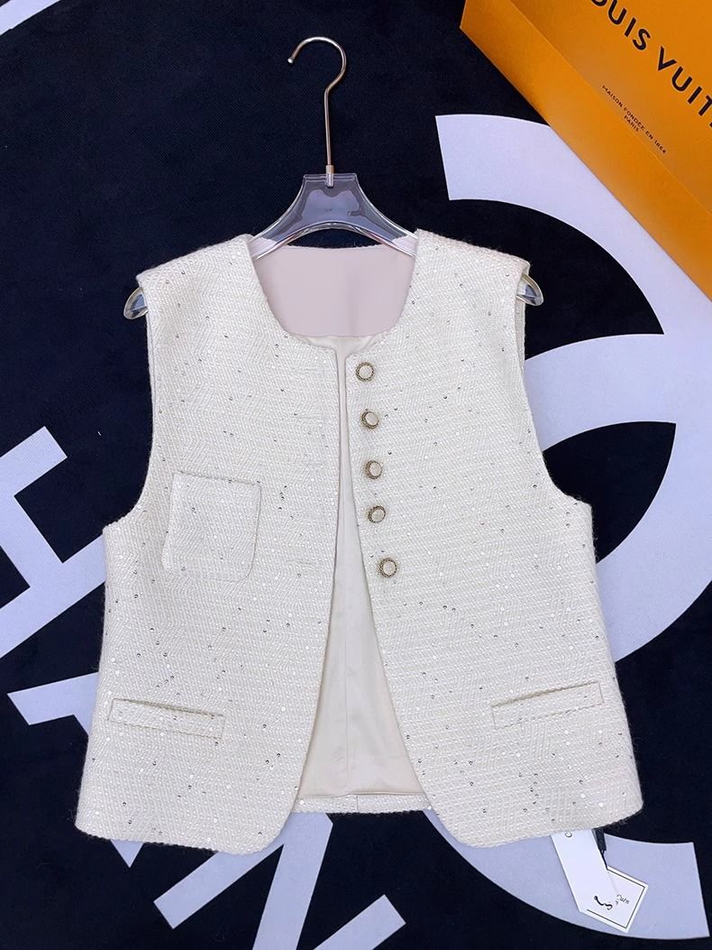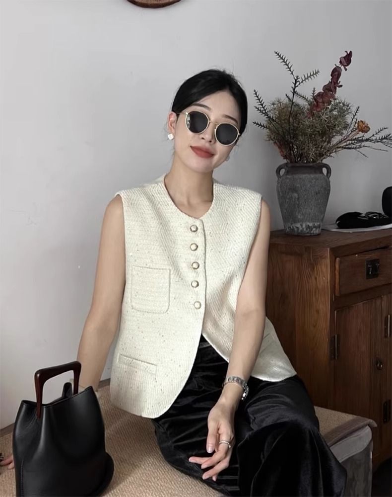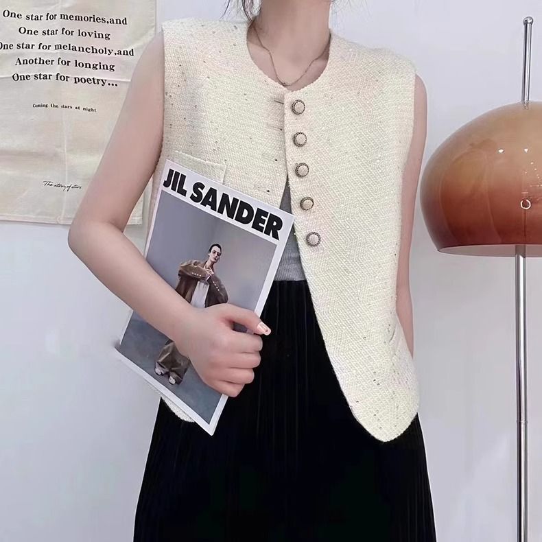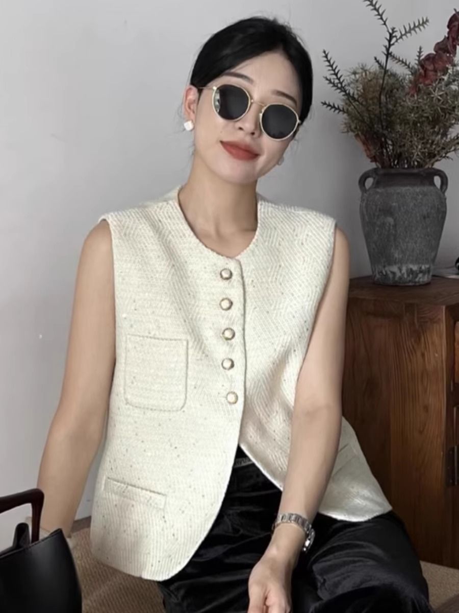 하이 엔드 디자인 센스 샤넬 스타일 여성 조끼 2024 새로운 봄 허리 코트 느슨한 민소매 조끼스토어 가기
