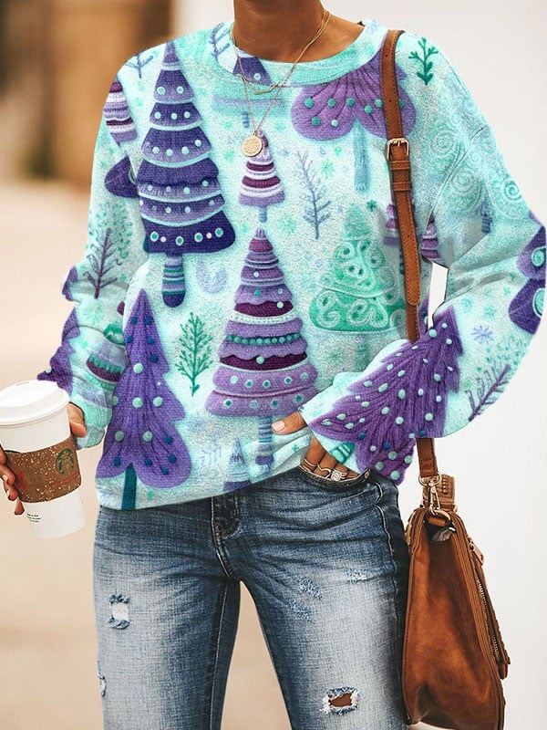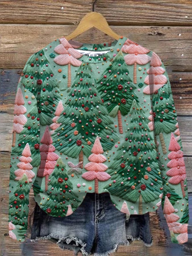 크리스마스 3D 디지털 인쇄 스웨터 새로운 느슨한 크리스마스 트리 풀오버 2023 남성과 여성의 둥근 목 스웨터