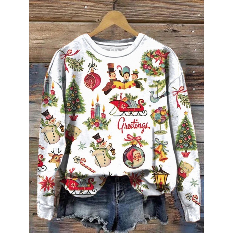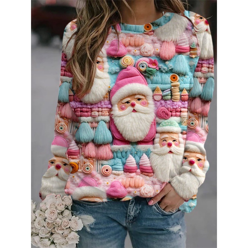 크리스마스 3D 디지털 인쇄 스웨터 새로운 느슨한 크리스마스 트리 풀오버 2023 남성과 여성의 둥근 목 스웨터스토어 가기