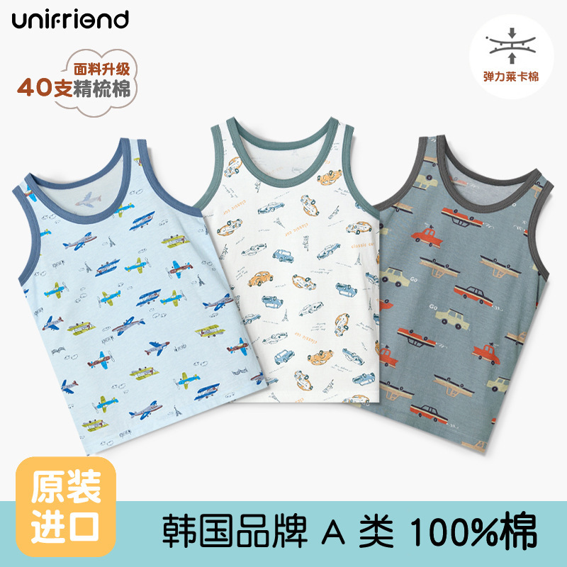 유니프렌드 아동용 면조끼 여아 이너웨어 남아 레이서넥 조끼 사계절 착용 가능 사계절 조끼