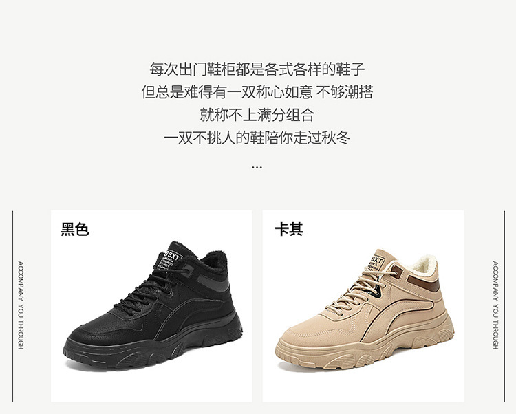 겨울 남성 신발 기모 하이 탑 신발 남성용 세련된 올 매치 두꺼운 밑창 작업 신발이 두껍게 된 따뜻한면 패딩 신발 노동 보호 신발 남성스토어 가기