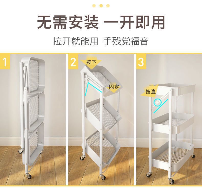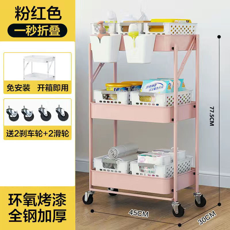 설치 무료 접이식 트롤리 주방 및 욕실 보관 랙 모바일 가정용 아기 용품 다층 보관 랙
