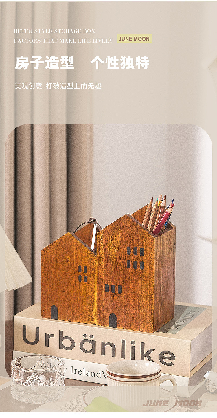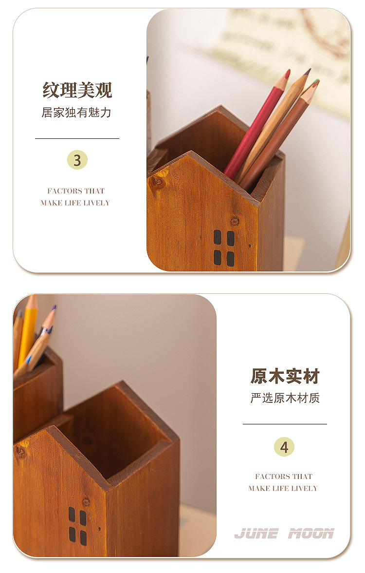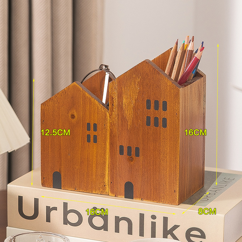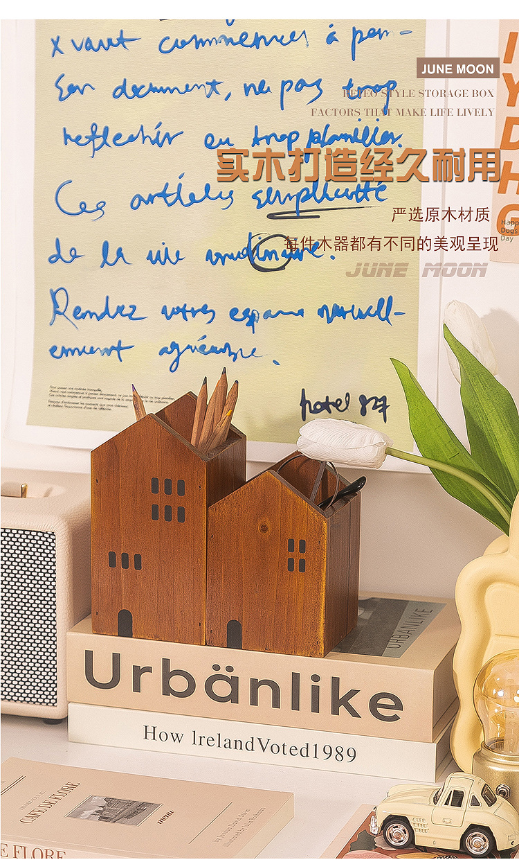 원목 데스크탑 수납함 집 장식품 사무실용 붓, 색연필 정리함 화장 브러쉬 통 수납함