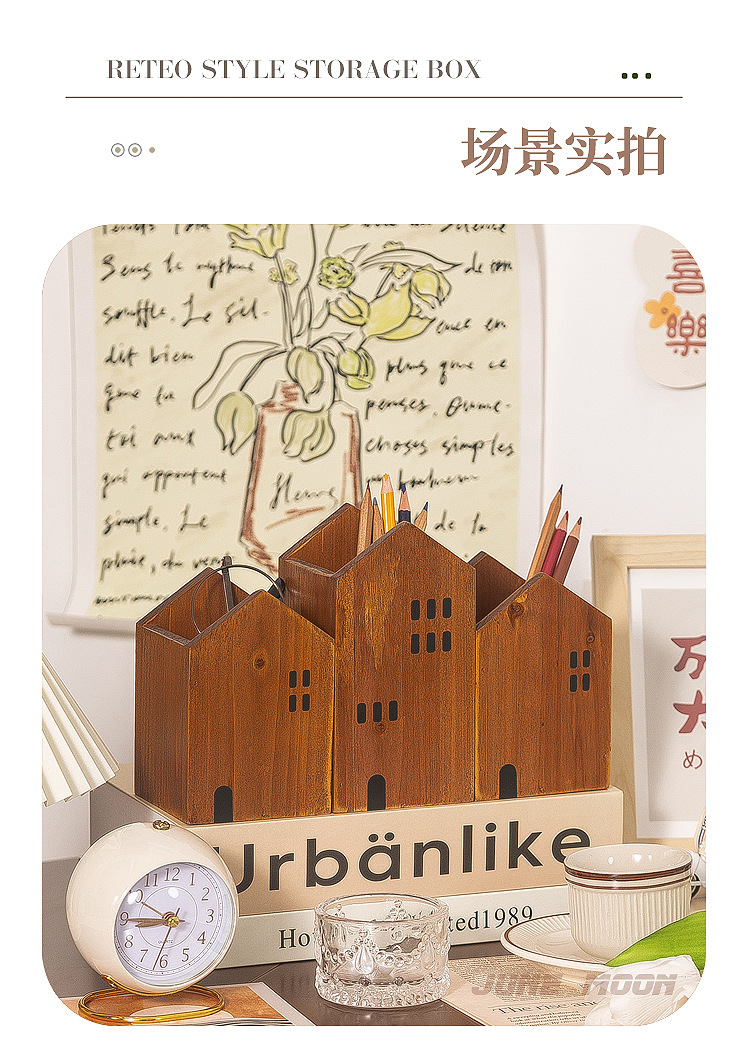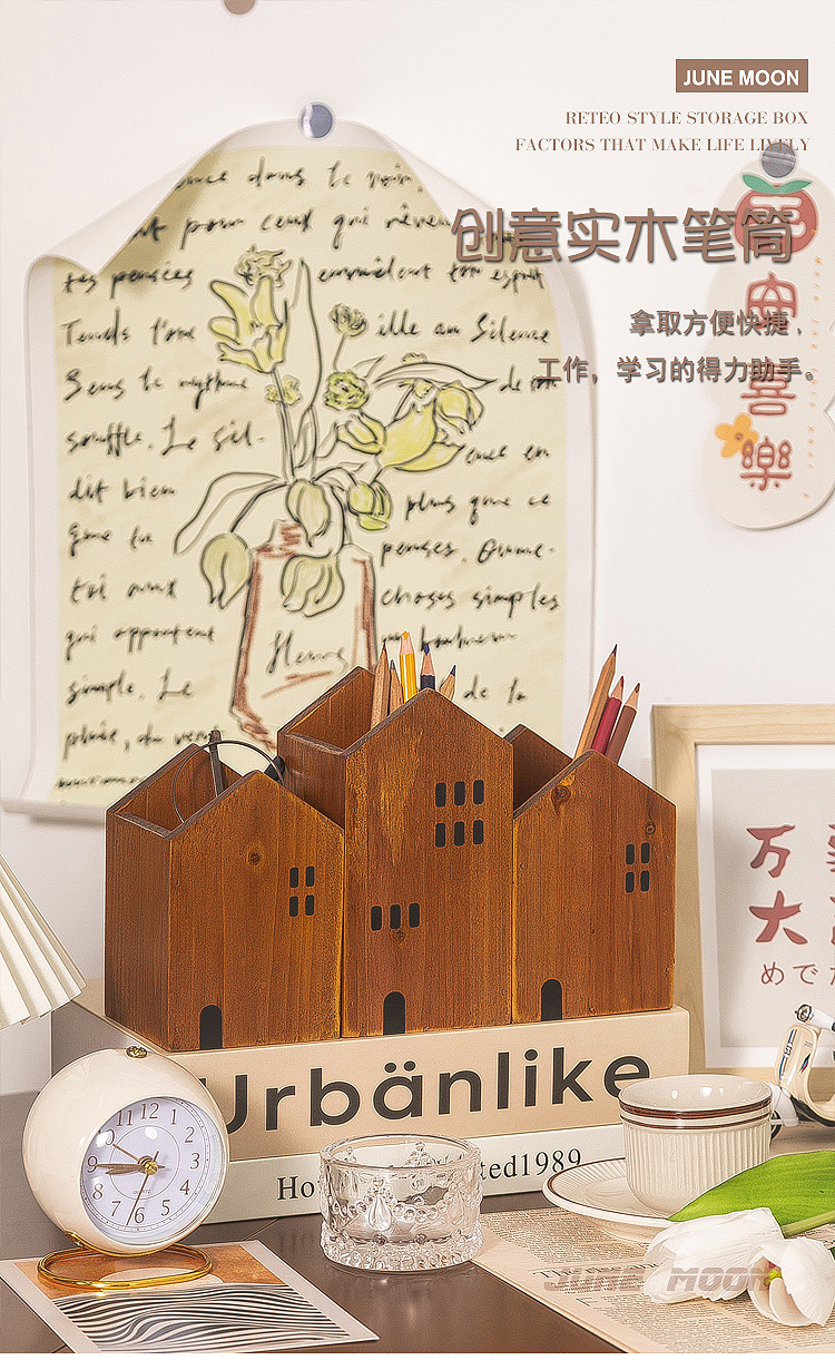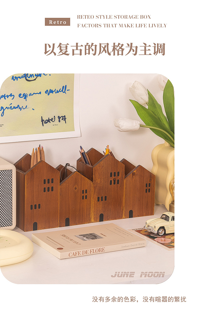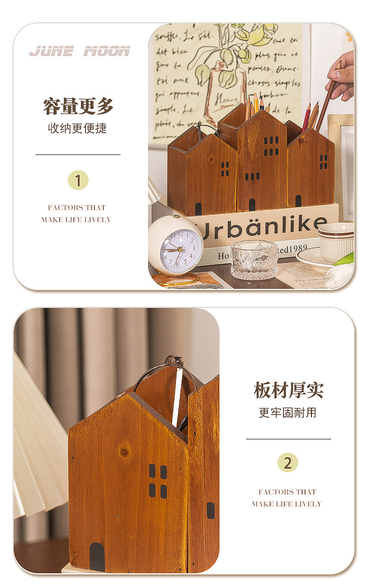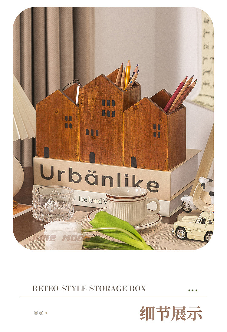 원목 데스크탑 수납함 집 장식품 사무실용 붓, 색연필 정리함 화장 브러쉬 통 수납함