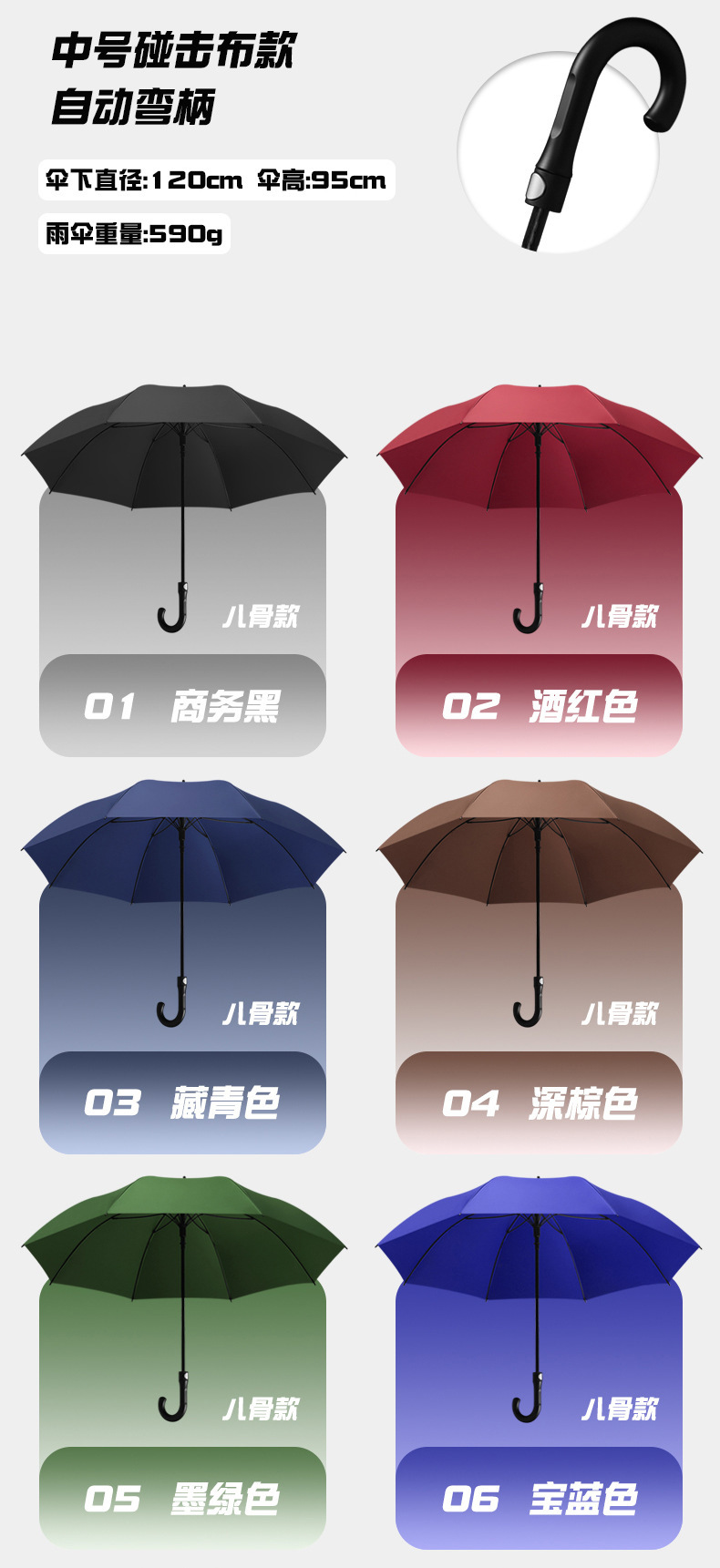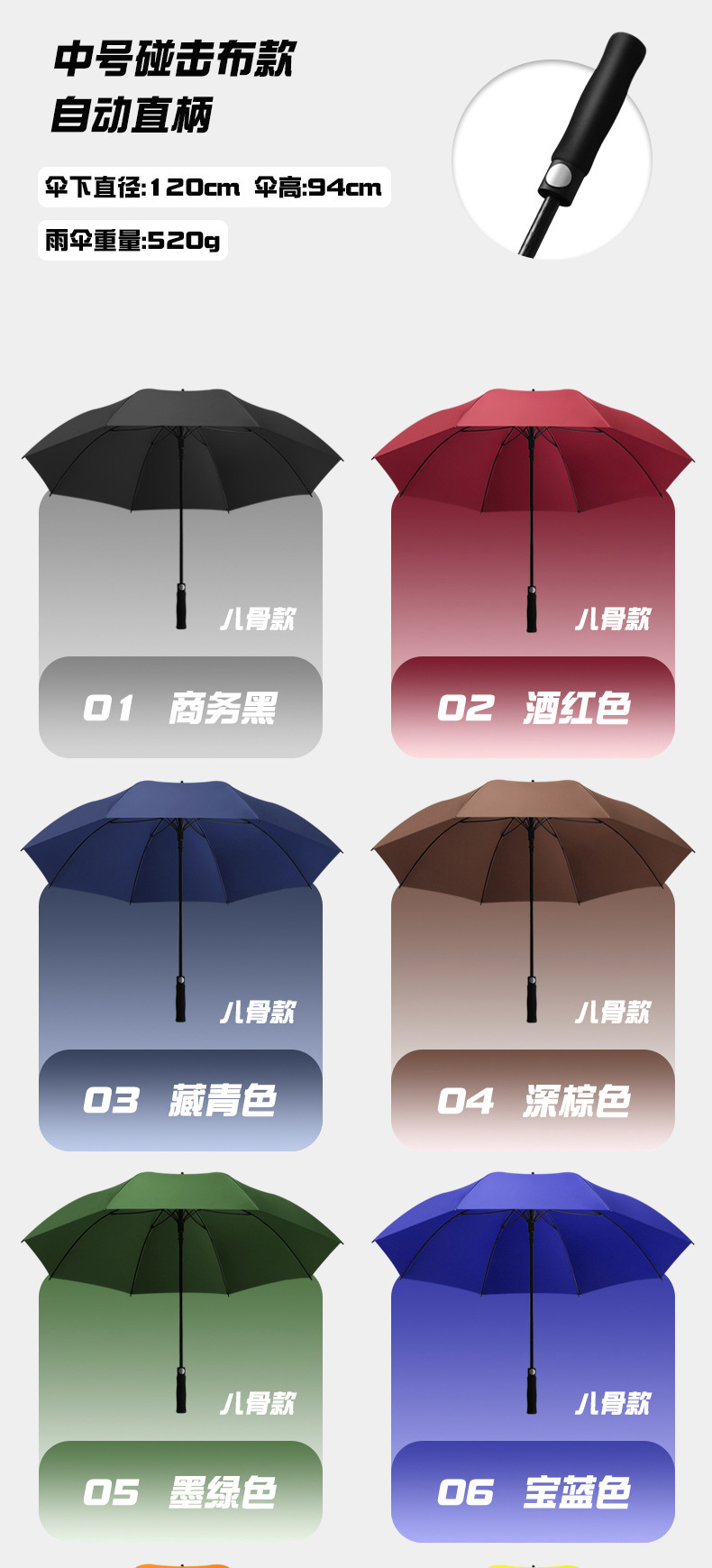 • 120CM-블랙 외부 및 네이비 내부 스트레이트 핸들-더블 레이어