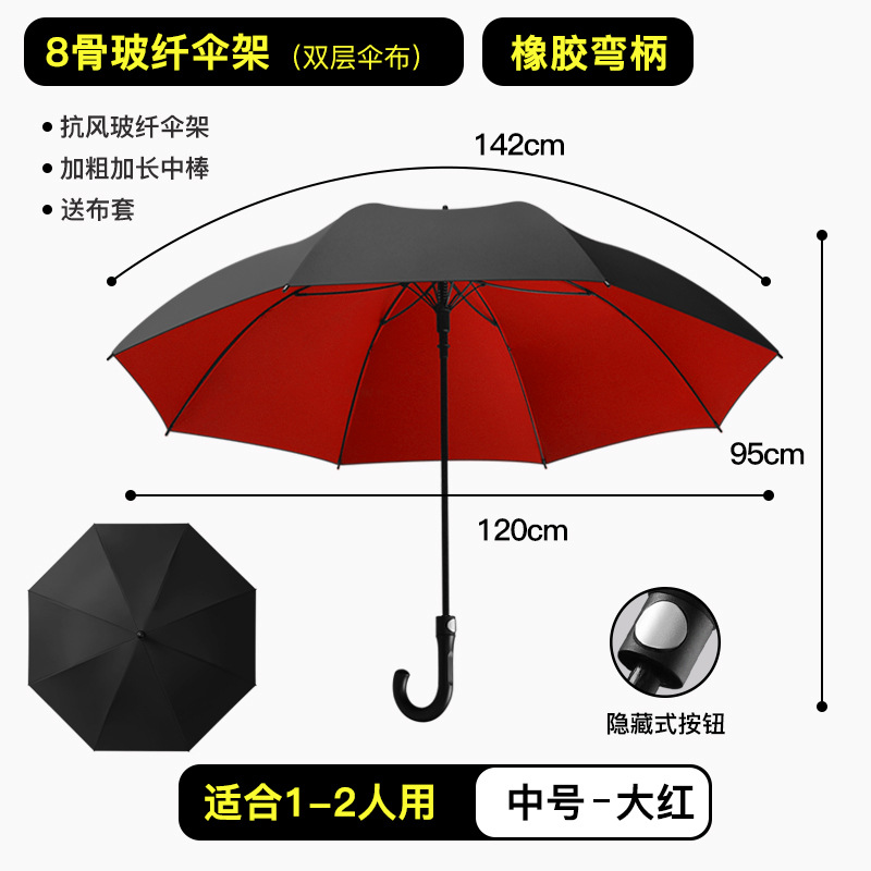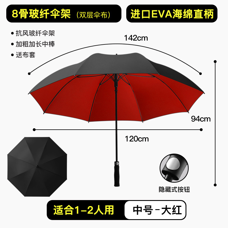 올섬유 자동 확대 강화 이중 레이어 롱 핸들 우산, 비즈니스용 햇빛/비옷겸용 우산, 차량용 2인용 광고 우산, 로고 인쇄 가능스토어 가기