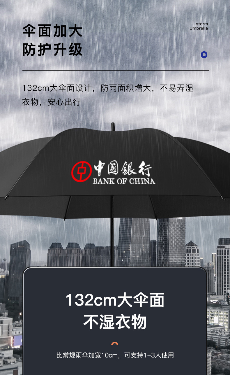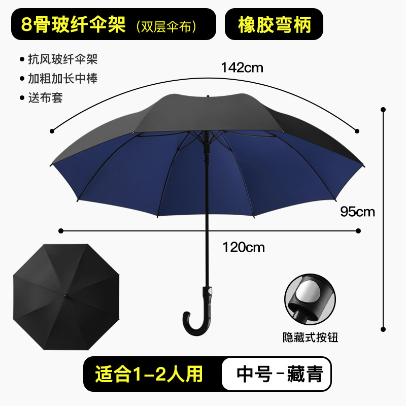 올섬유 자동 확대 강화 이중 레이어 롱 핸들 우산, 비즈니스용 햇빛/비옷겸용 우산, 차량용 2인용 광고 우산, 로고 인쇄 가능
