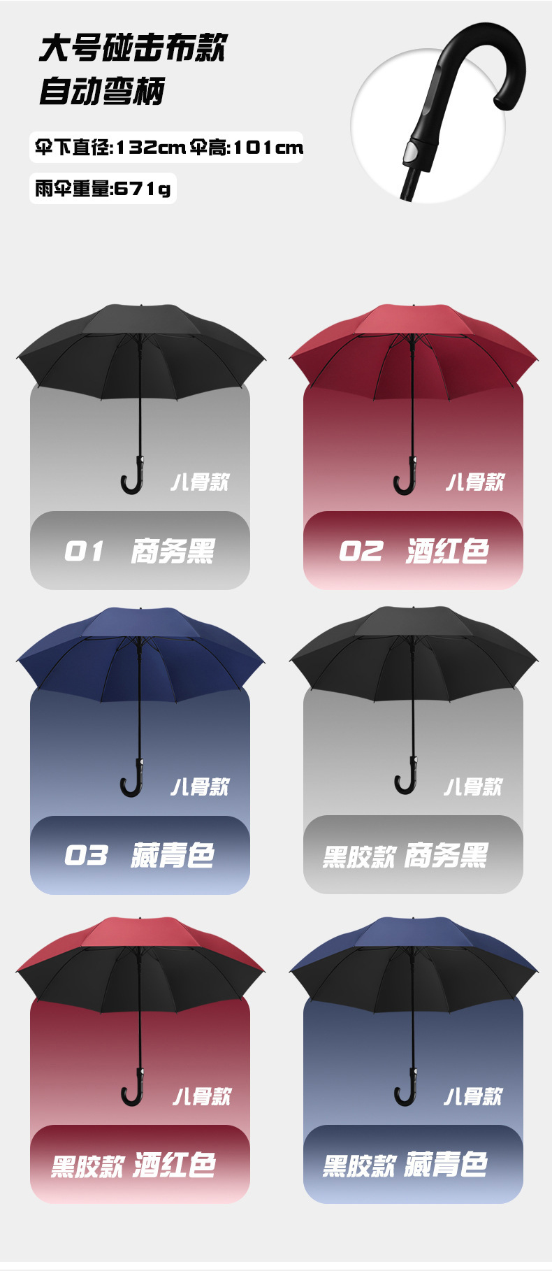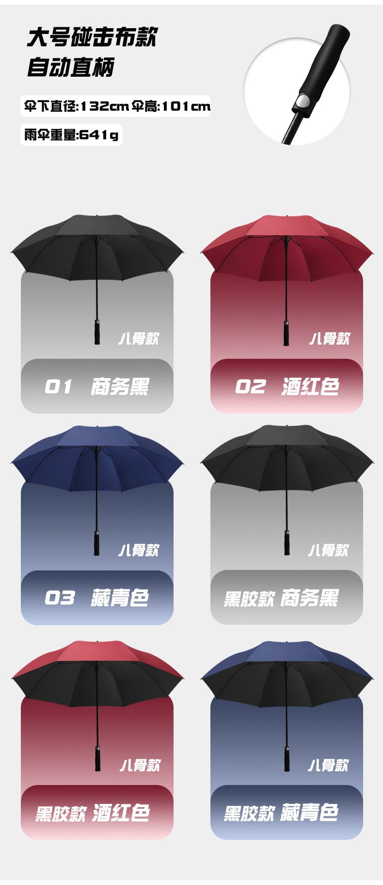 • 132CM-블랙 외부 및 네이비 내부 스트레이트 핸들-더블 레이어