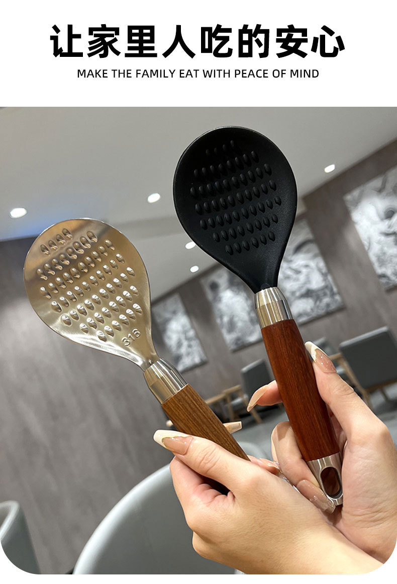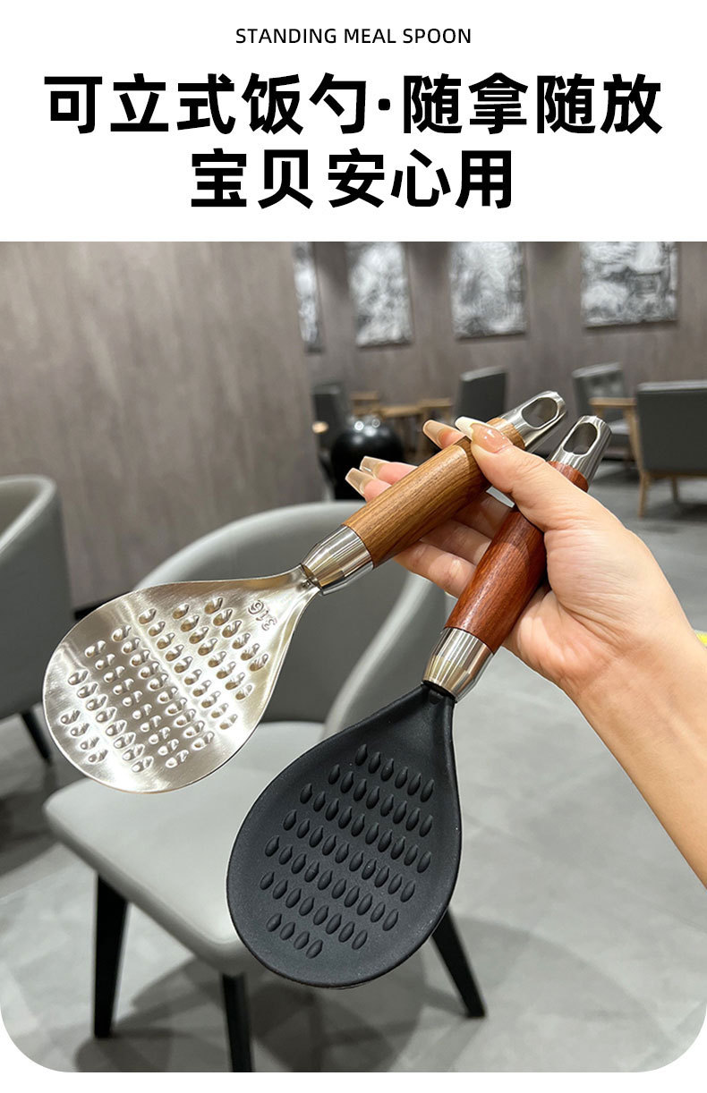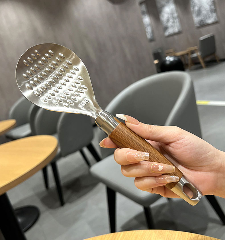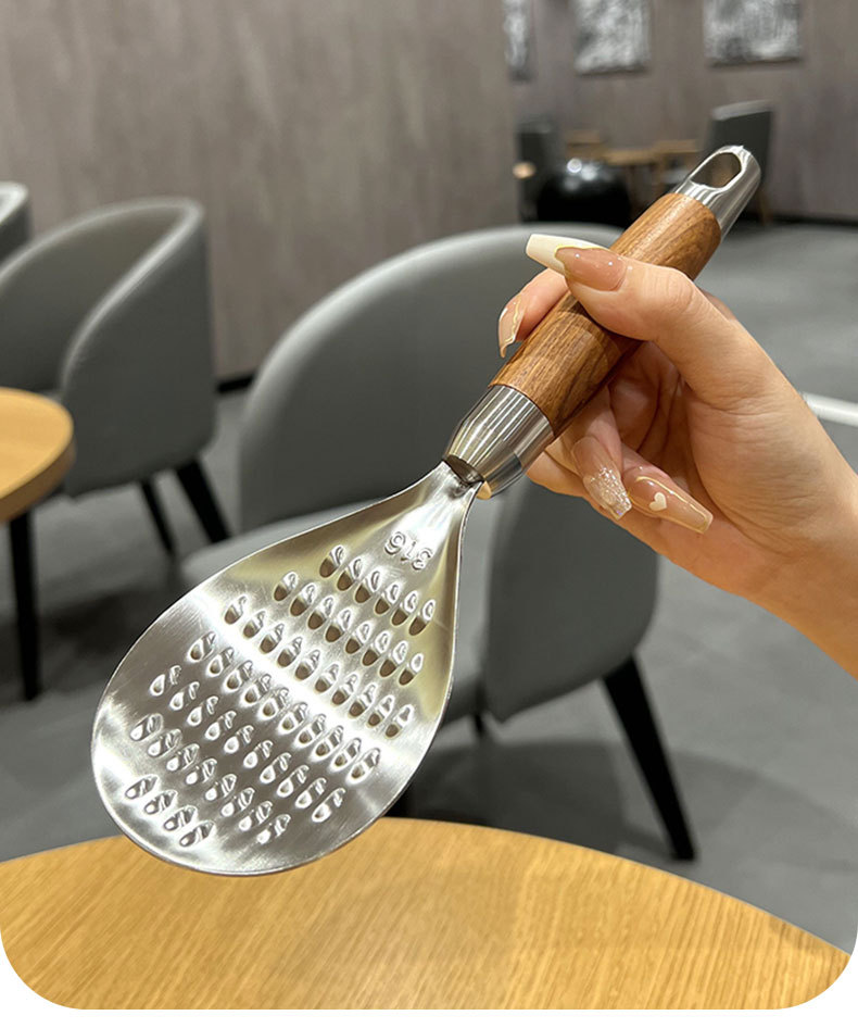 316L 스테인레스 스틸 로즈 우드 쌀 스푼 수직 가정용 쌀 스푼 높은 색상 가치 쌀 스푼