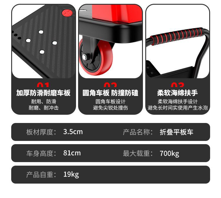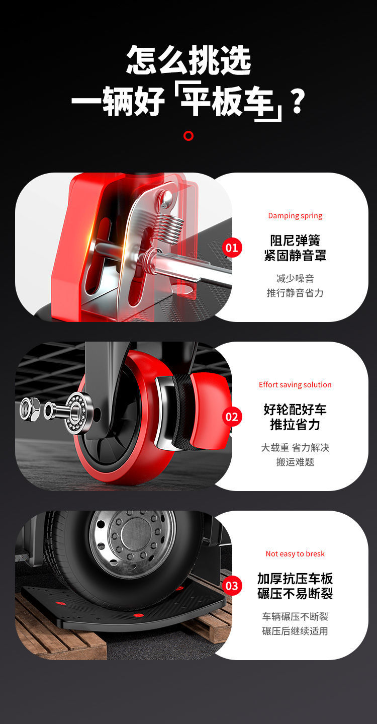 트롤리 플랫 트롤리 트레일러 트롤리 트롤리 접이식 휴대용 음소거 트롤리 홈 이동 트롤리