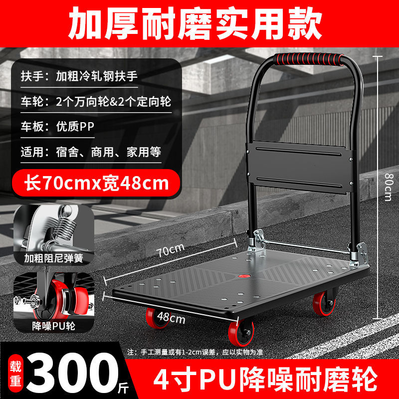 트롤리 플랫 트롤리 트레일러 트롤리 트롤리 접이식 휴대용 음소거 트롤리 홈 이동 트롤리스토어 가기