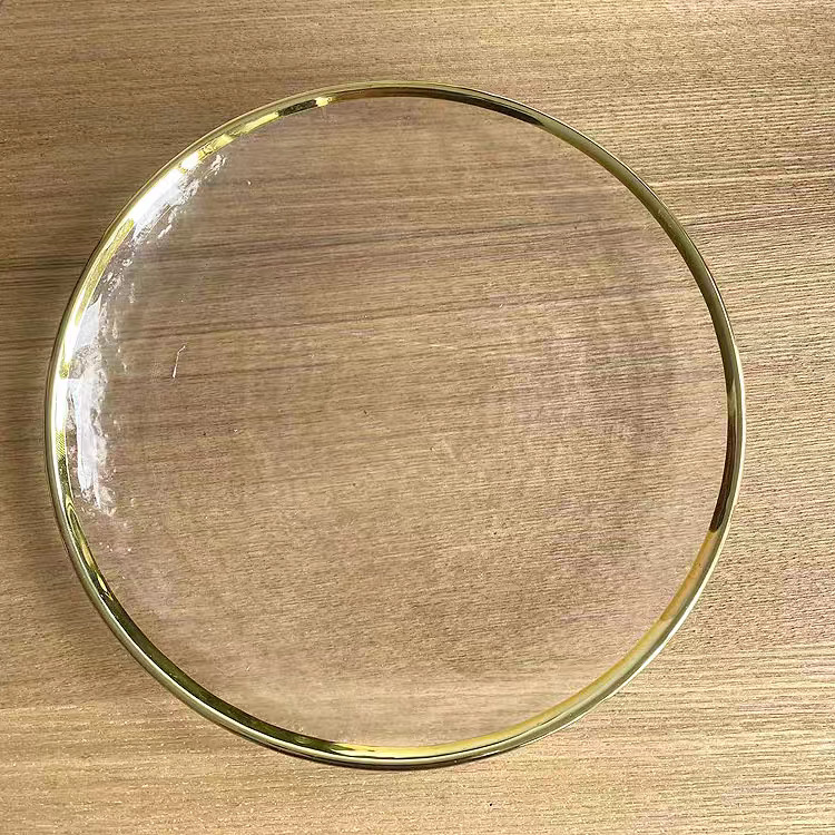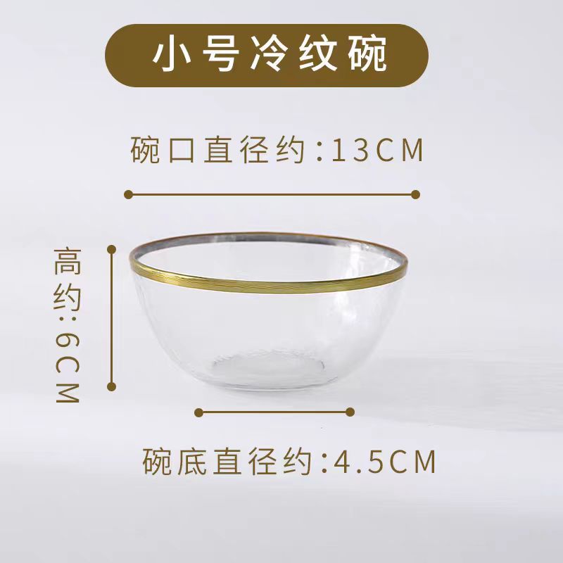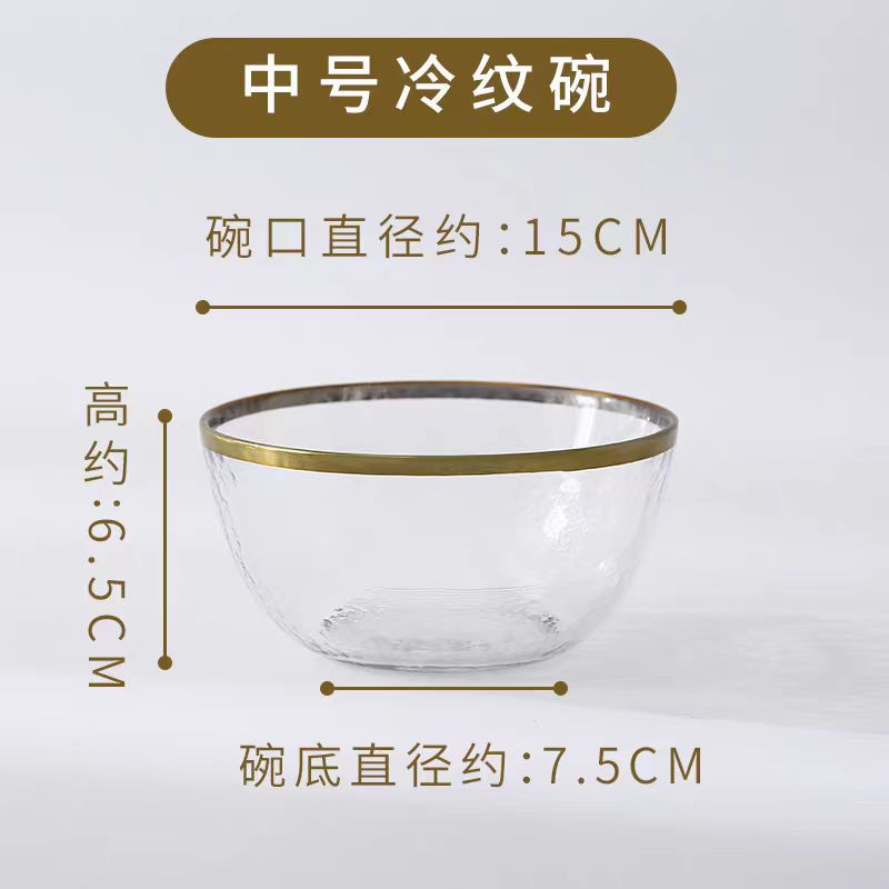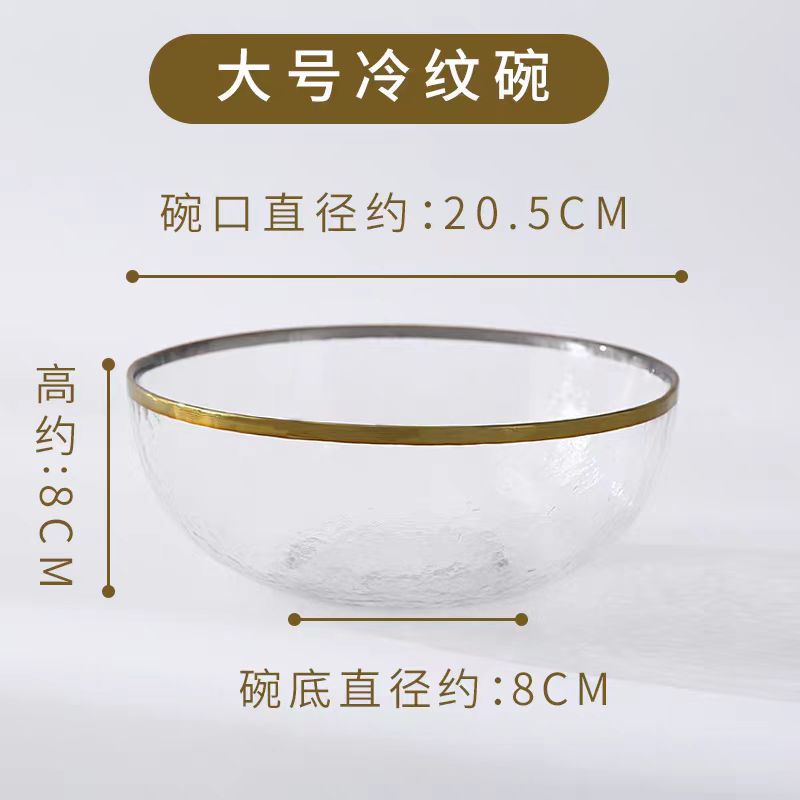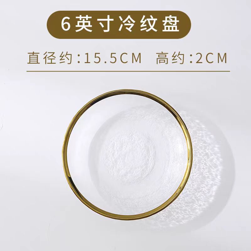 차가운 패턴 황금 가장자리 유리판 망치 패턴 황금 가장자리 유리판 샐러드 그릇 과일 플레이트 가정용 식기 세트