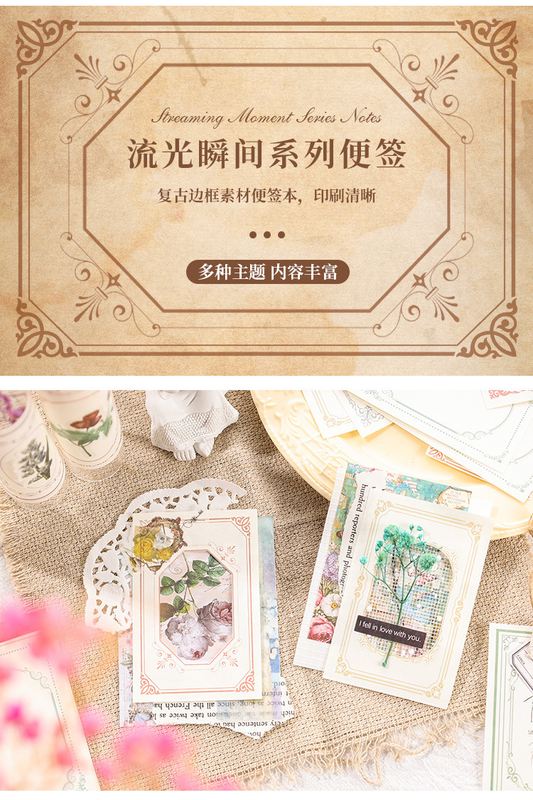 Streamer 인스턴트 소재 종이 저널 노트 용지 비 접착 복고풍 장식 재료 diy 메시지 메모 용지스토어 가기