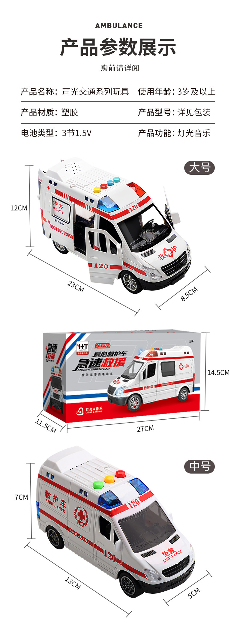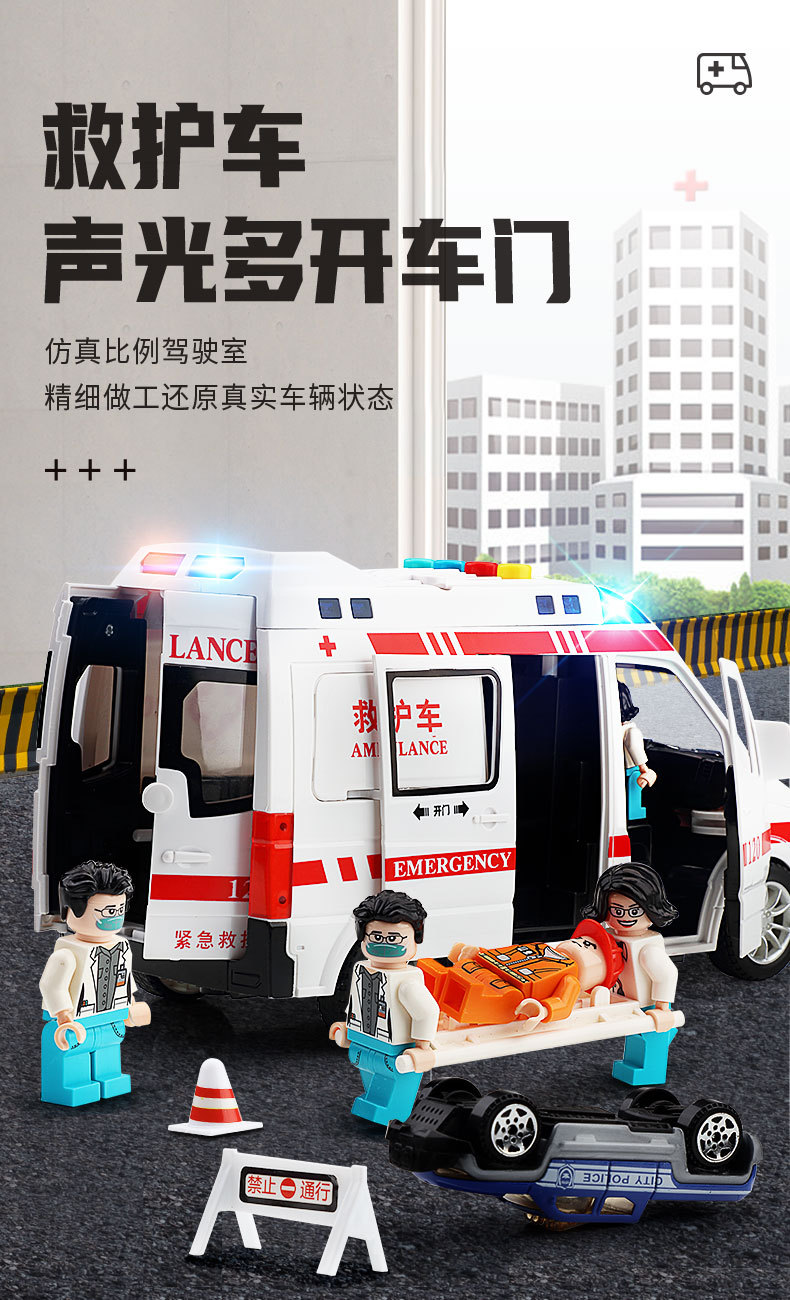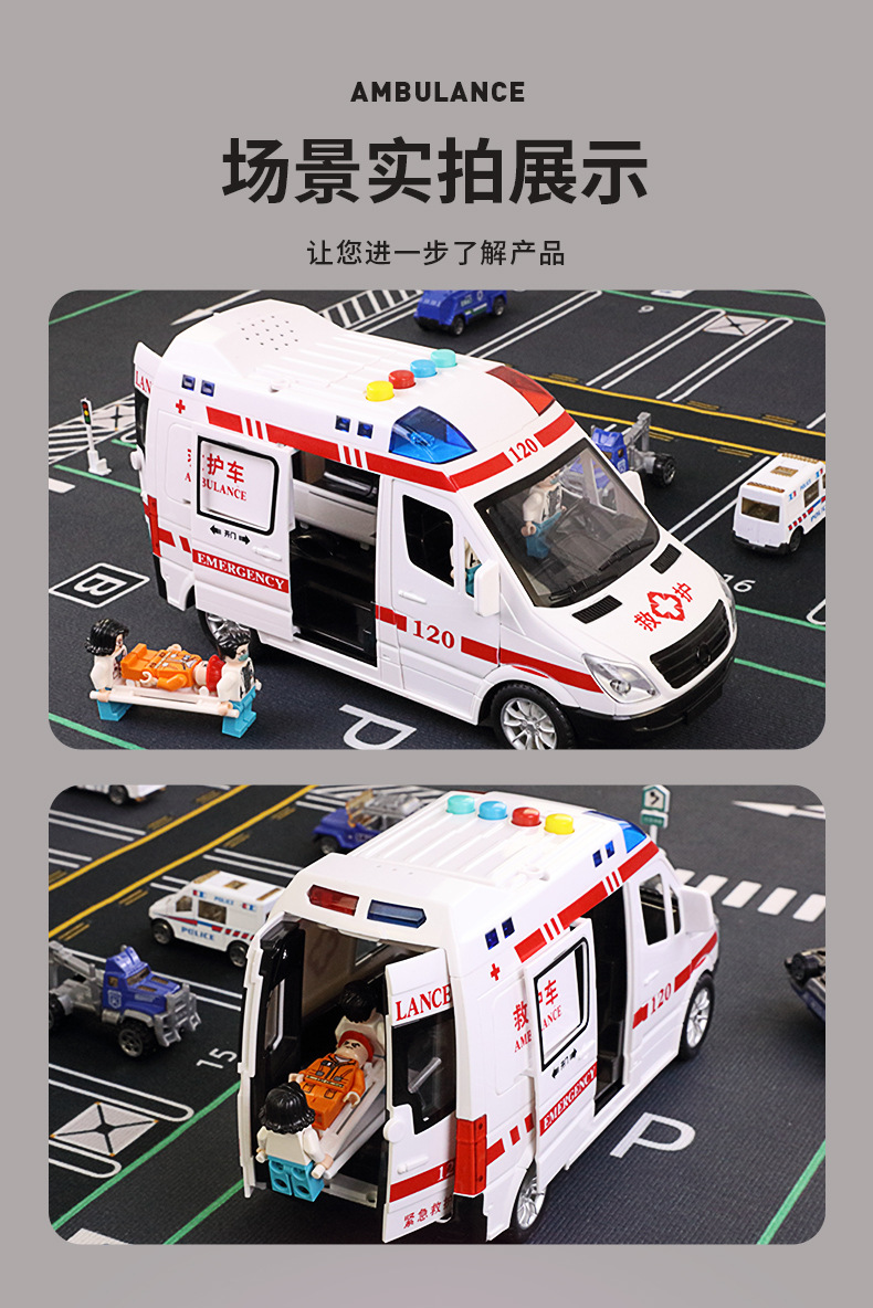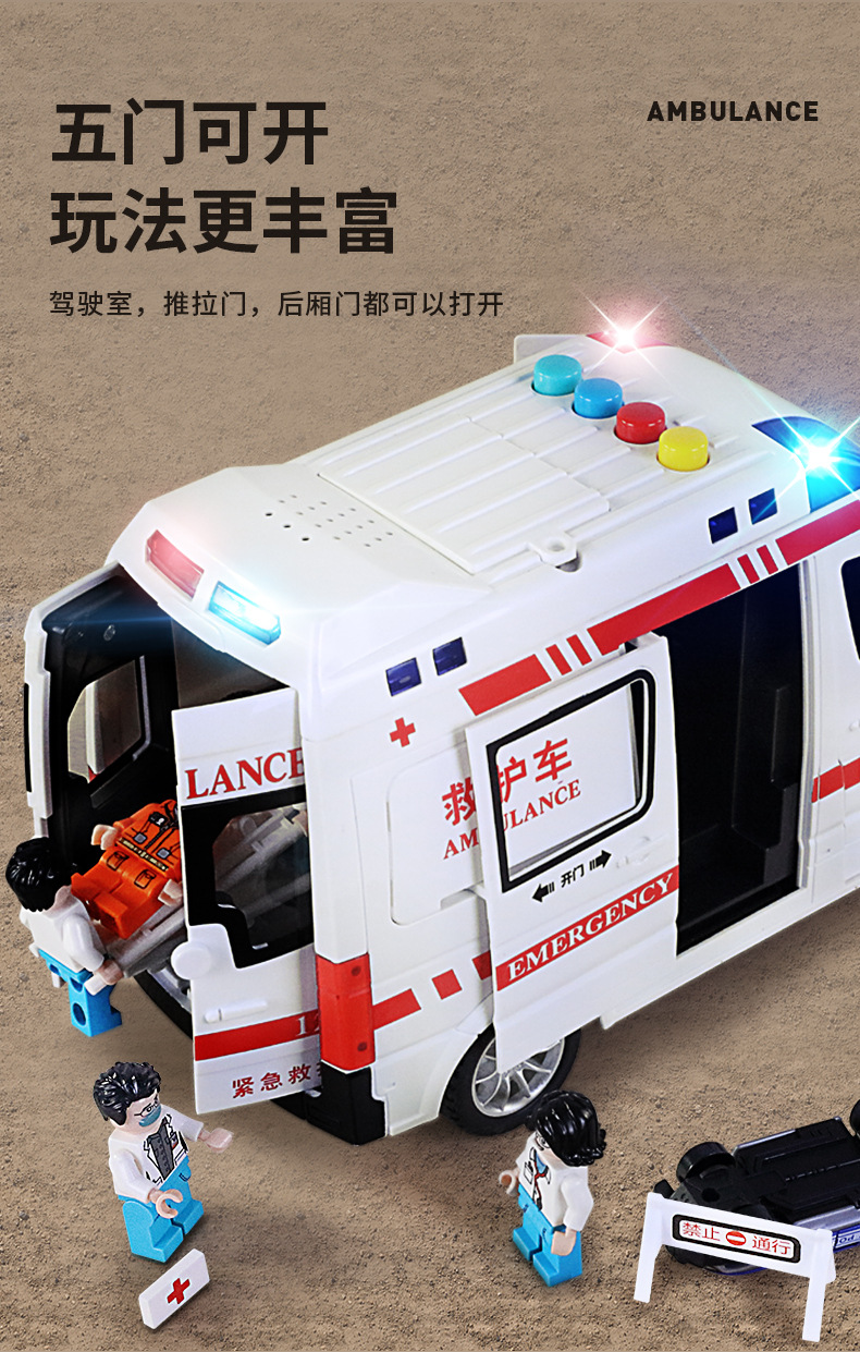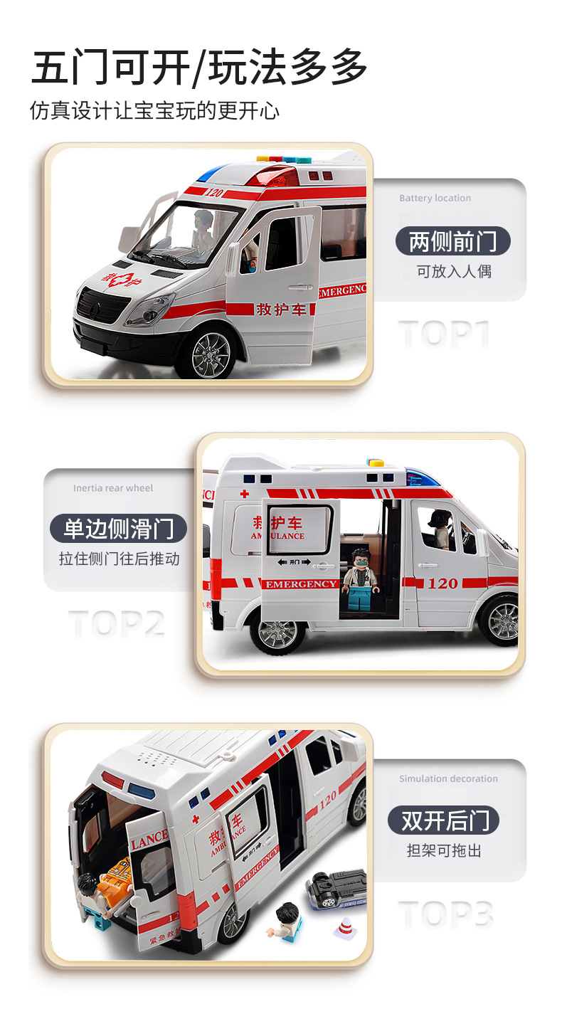 빛과 음악을 가진 120 구급차 시뮬레이션 구급차는 문 장난감 자동차 어린이 관성 자동차 모델을 열 수 있습니다 3 세
