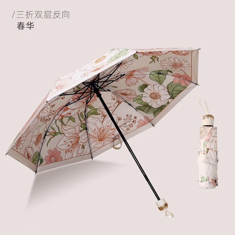더블 레이어 블랙 접착제 태양 보호 우산 여성 슈퍼 UV 보호 우산 접이식 양면 비와 비 이중 사용 우산 upf50 +스토어 가기