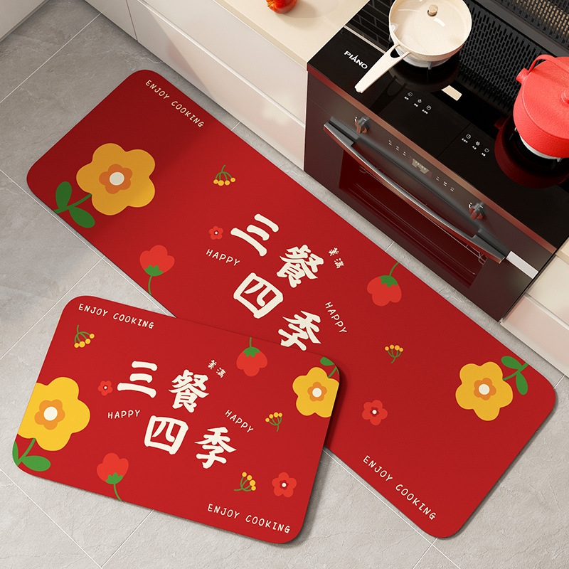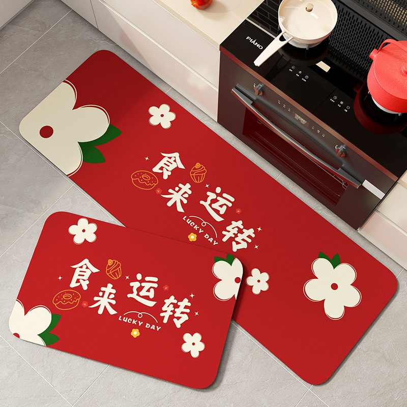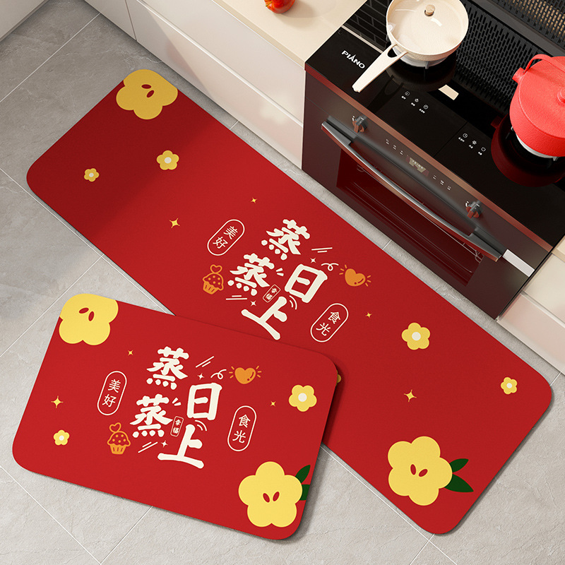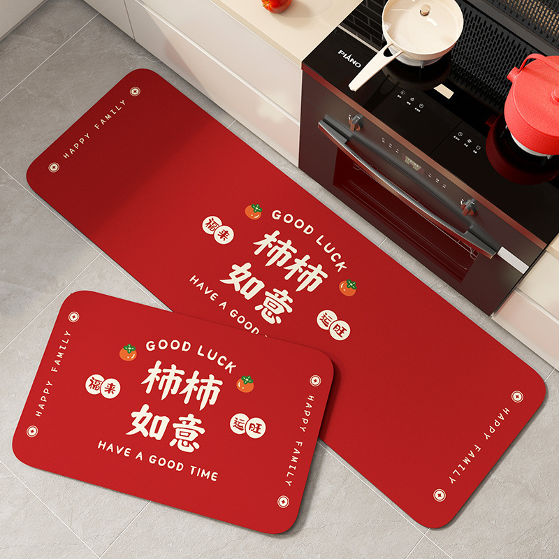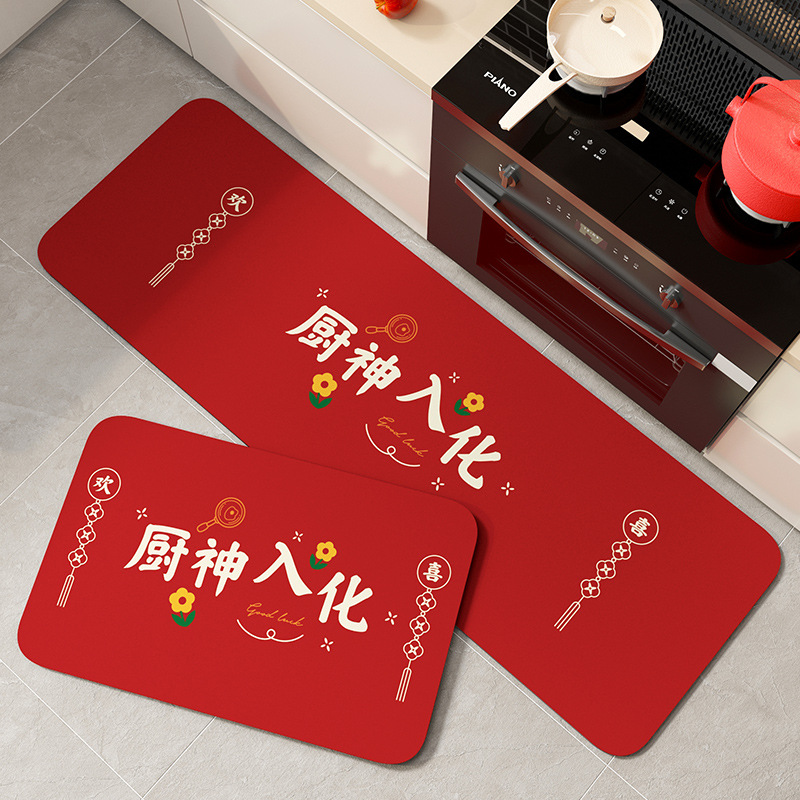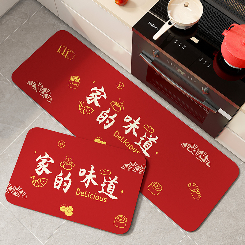 주방 바닥 매트 미끄럼 방지 오일 방지 diatom 진흙 지울 수있는 빨 수있는 흡수성 바닥 매트 레드 축제 안티 오염 도어 카펫
