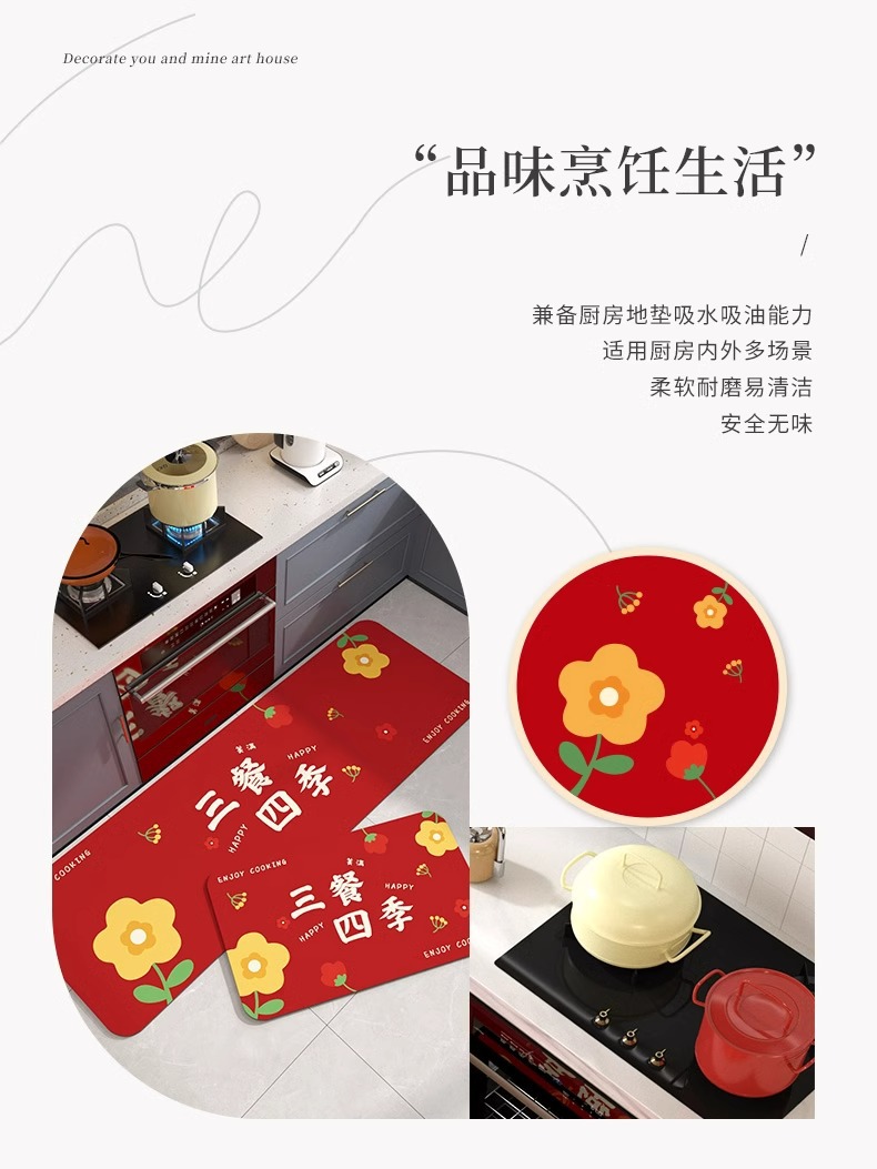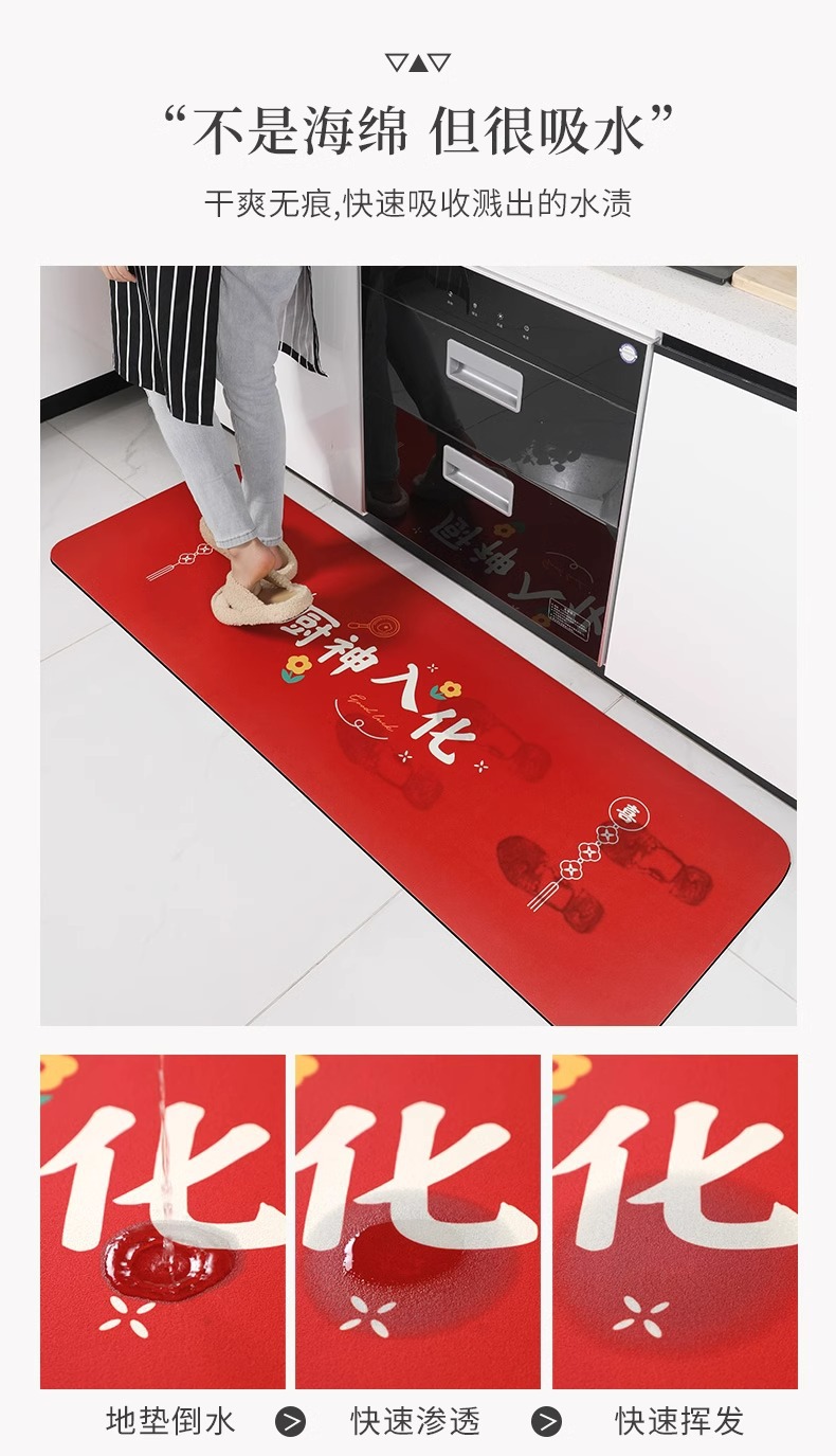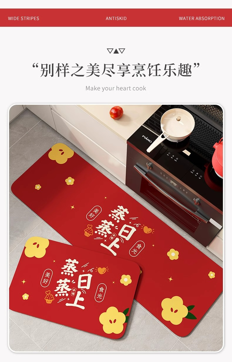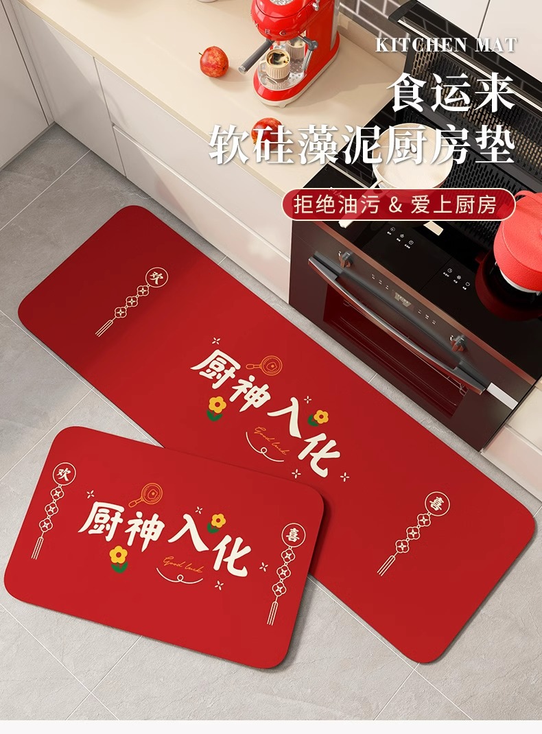 주방 바닥 매트 미끄럼 방지 오일 방지 diatom 진흙 지울 수있는 빨 수있는 흡수성 바닥 매트 레드 축제 안티 오염 도어 카펫