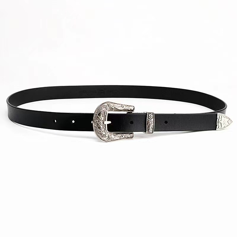 실버 버클이있는 간단한 기본 틈새 흑백 벨트 소년과 소녀를위한 올 매치 유행 벨트