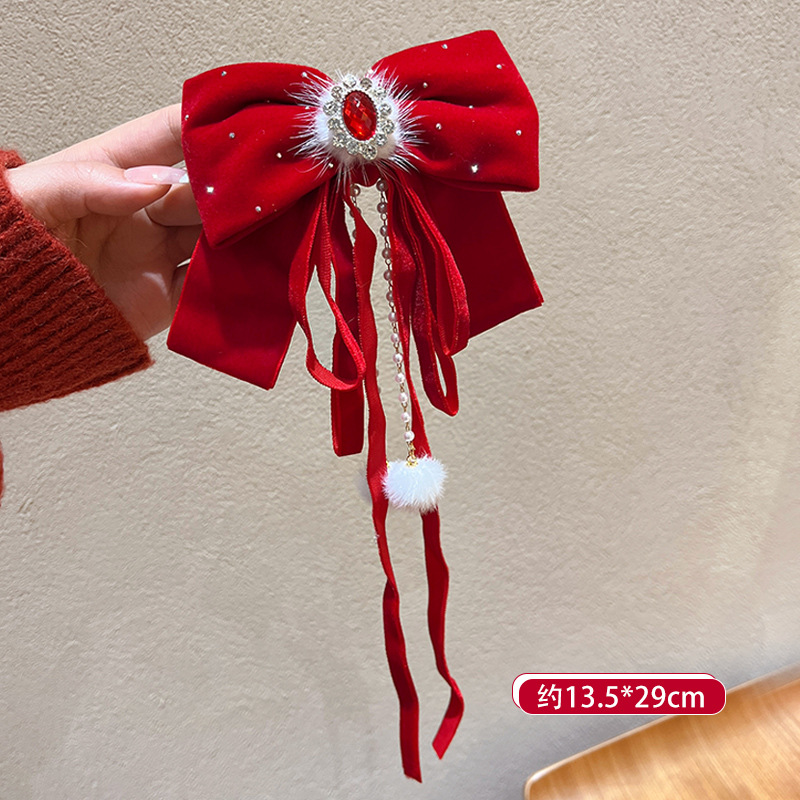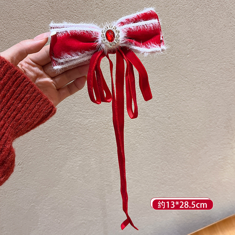 • 1371J 빨간 다이아몬드 활 리본 머리핀