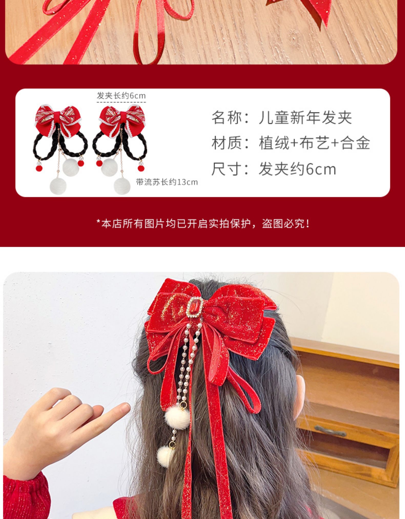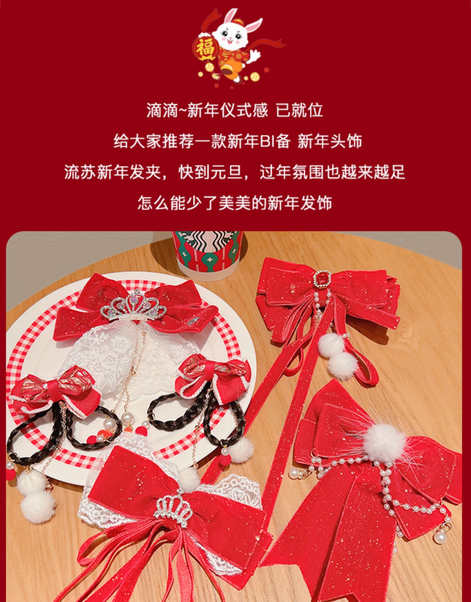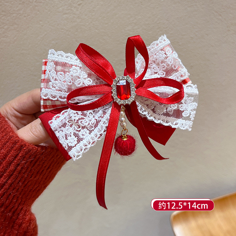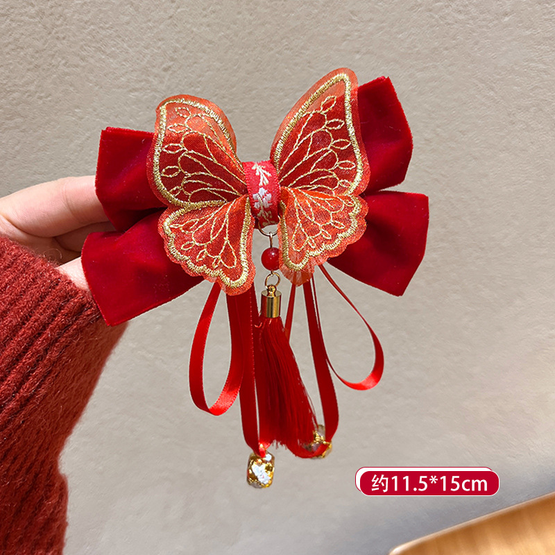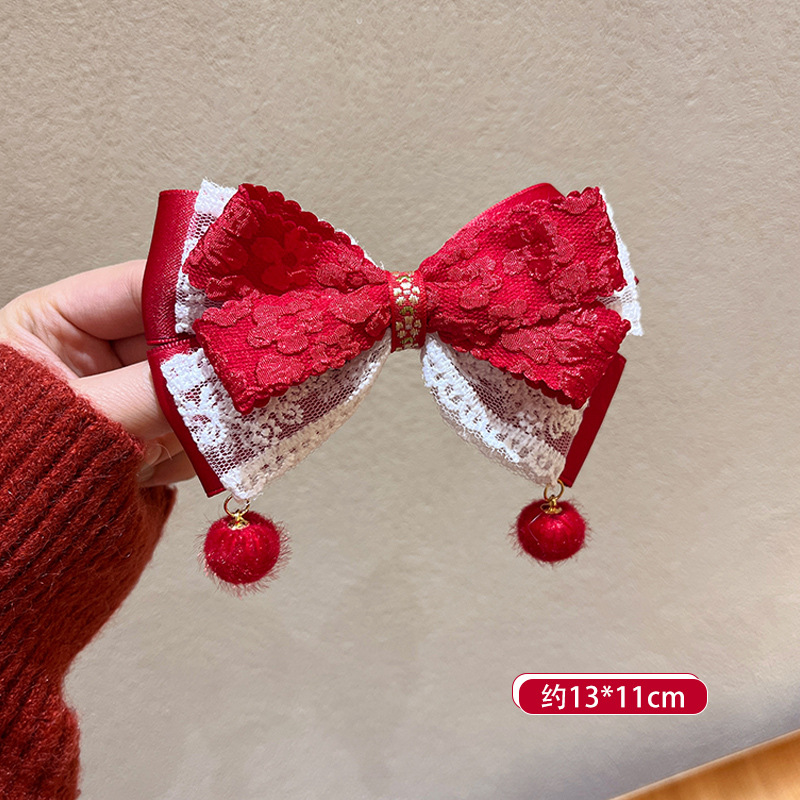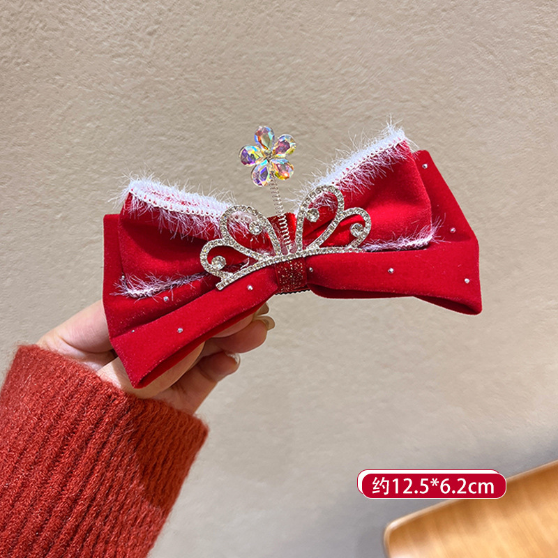 새해 어린이 크라운 활 헤어핀 아기 빨간 머리 장식 작은 소녀의 머리 액세서리 한국 공주 리본 헤어핀